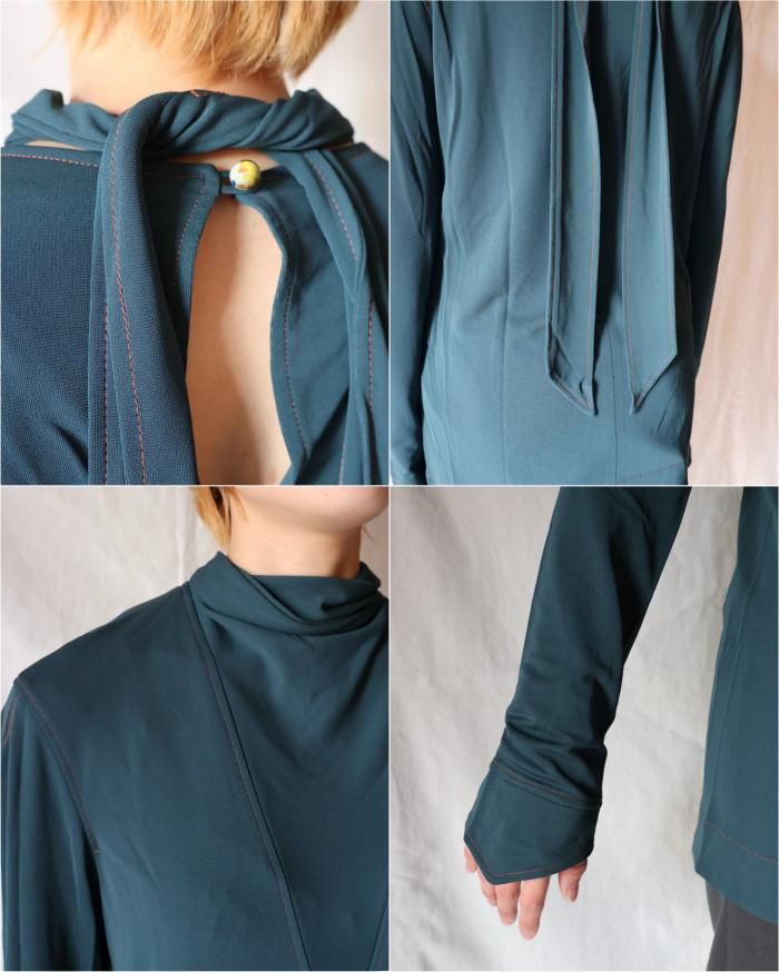 FUMIKA UCHIDA:TIE COLLAR JERSEY BLOUSE