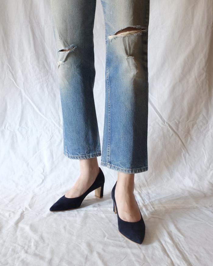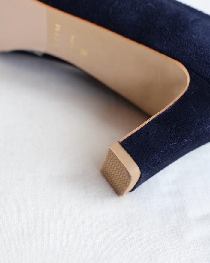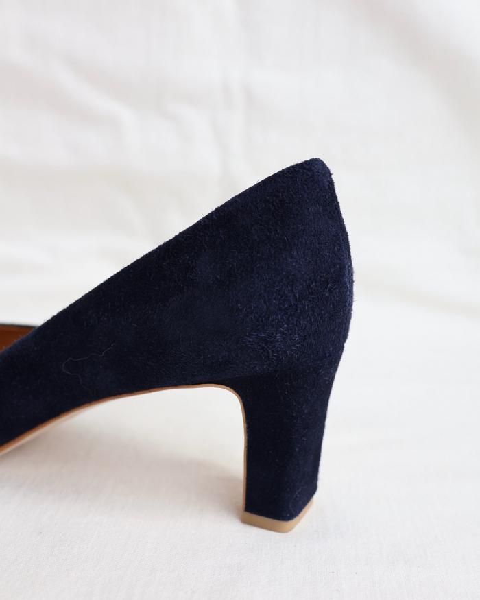 ローヒールのスエードパンプス。