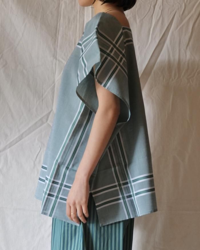淡いグリーンがとても美しく、暖かくなってきた春も暑い夏も心地よく過ごせるトップスです。