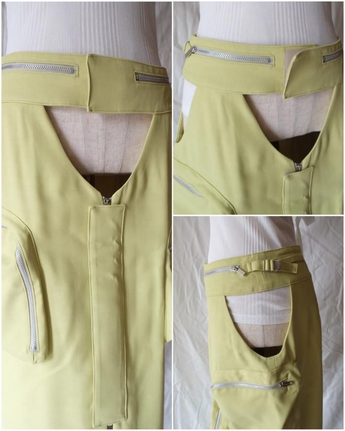 腰に落としてはくローウエストで、フロント・サイドが開いたデザイン。