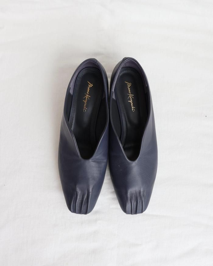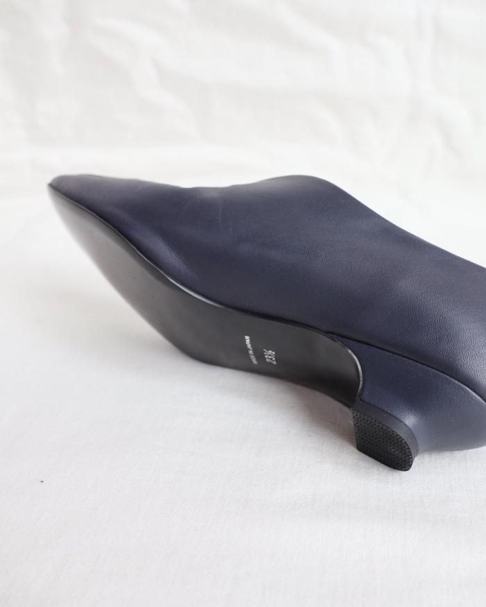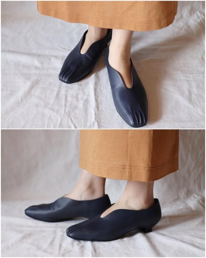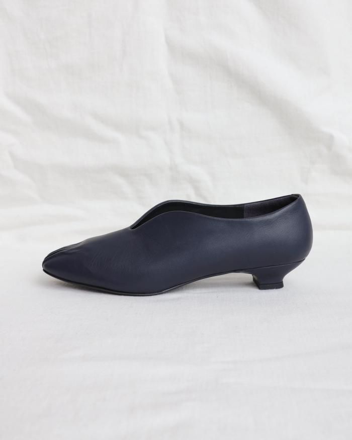 足を包み込むような曲線のラインが美しいローヒールスリッポン。