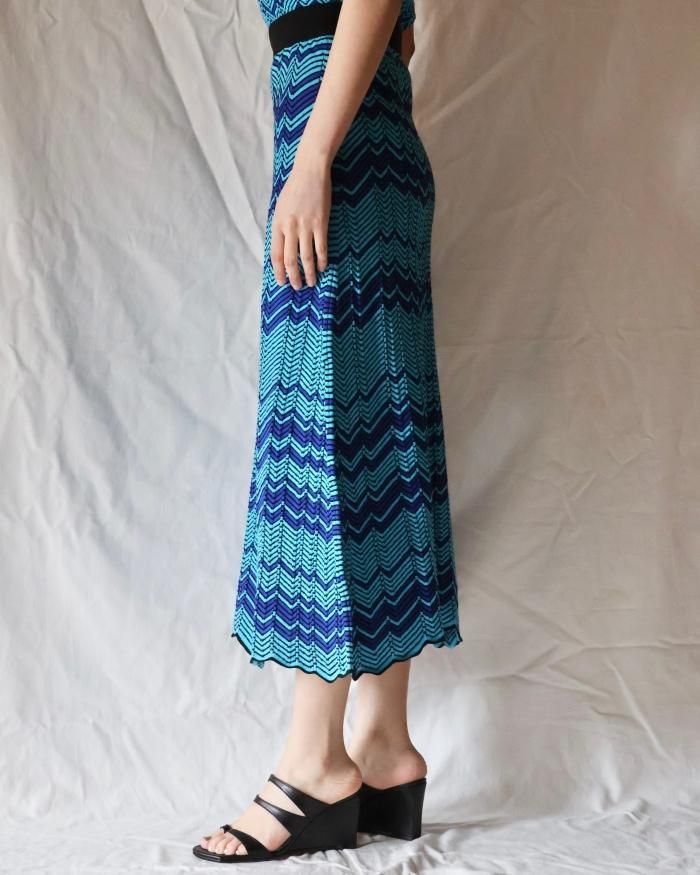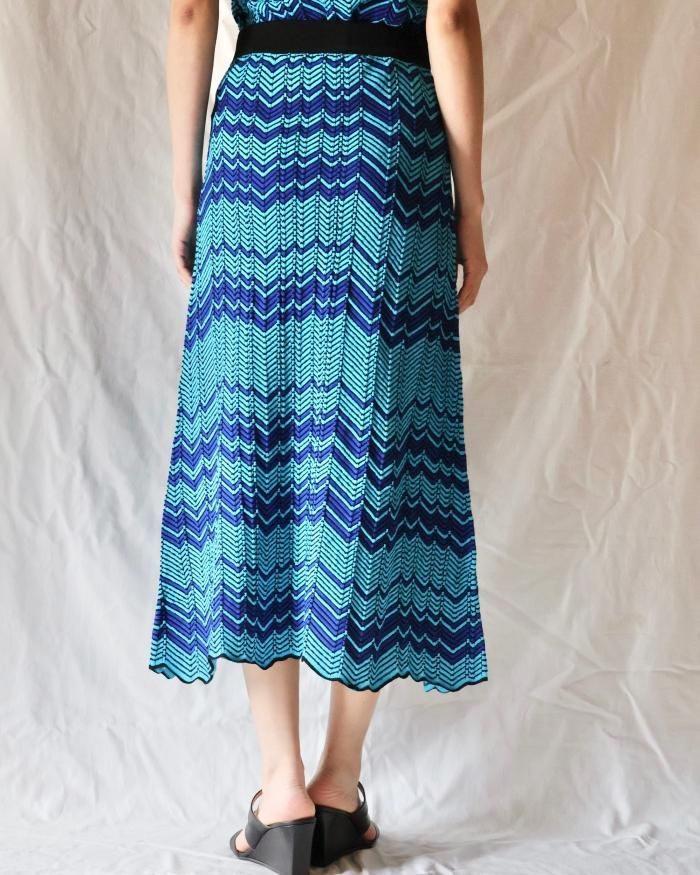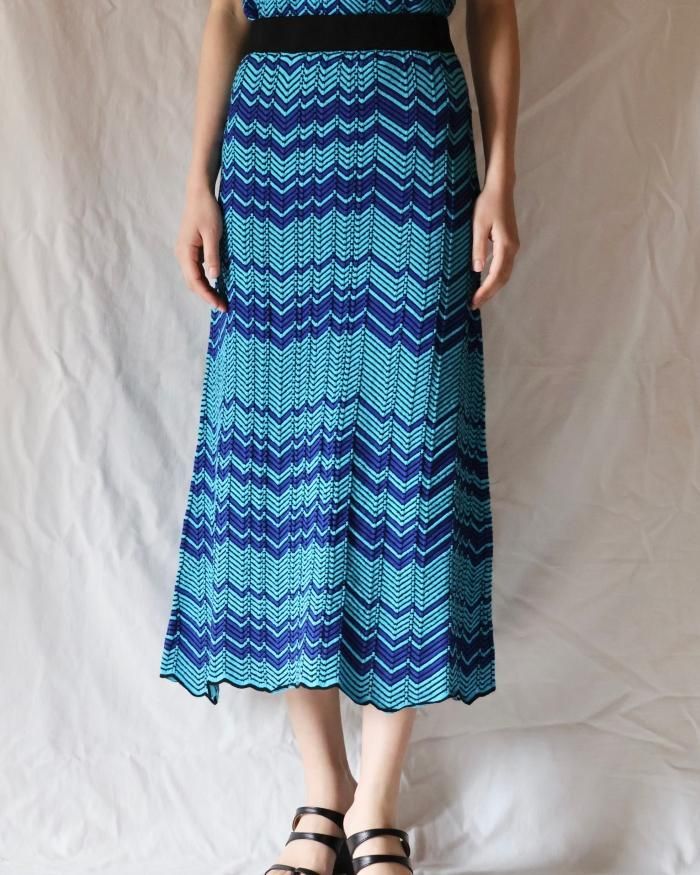 WALES BONNER:PALM KNIT SKIRT- GREEN&BLUE