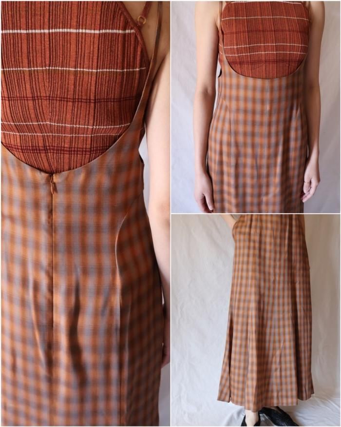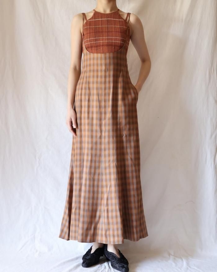 淡いチェック柄のキャミソールドレス。