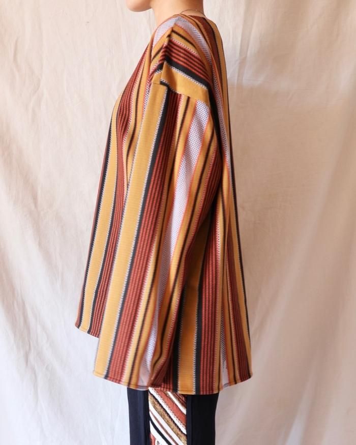 オーバーサイズながら、アシンメトリーなストライプの配置や透け感がメリハリを与えてくれます。