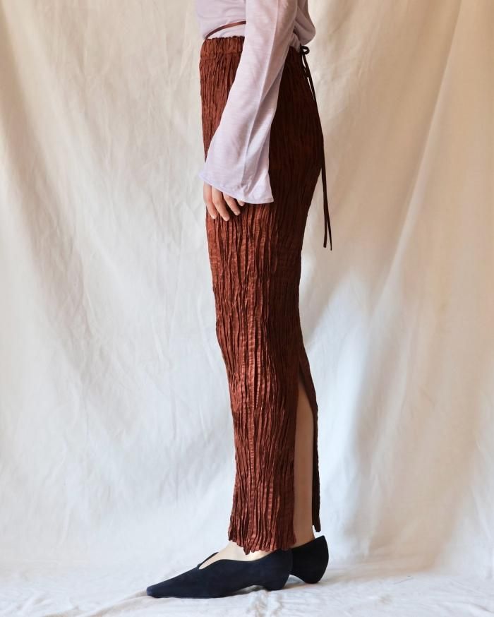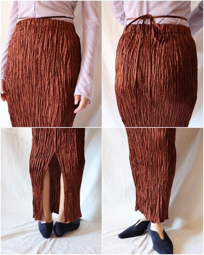 手作業で仕上げられたプリーツは、抜群な伸縮性がありどんな体型にも心地よくフィットしてくれます。