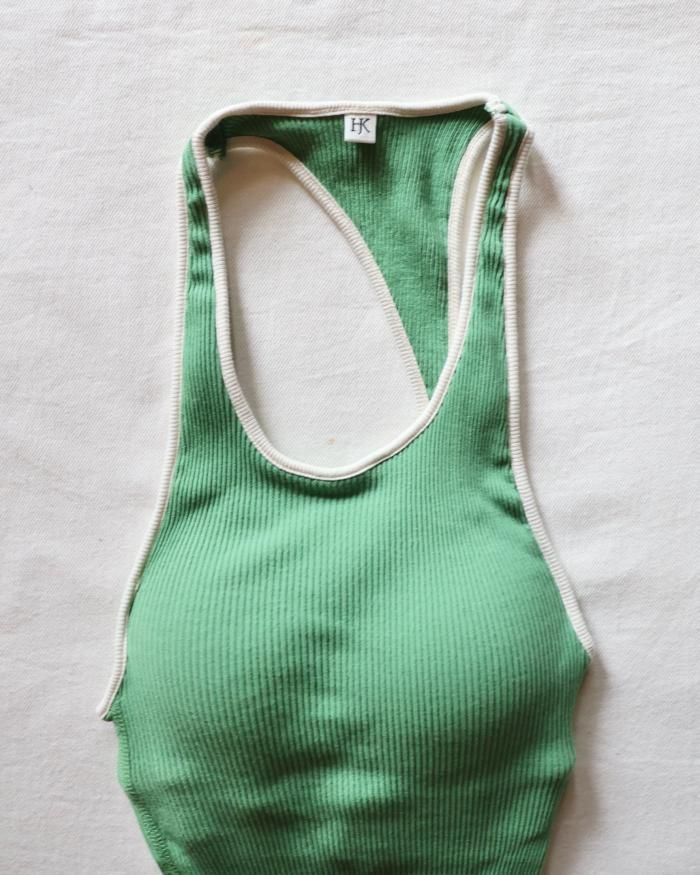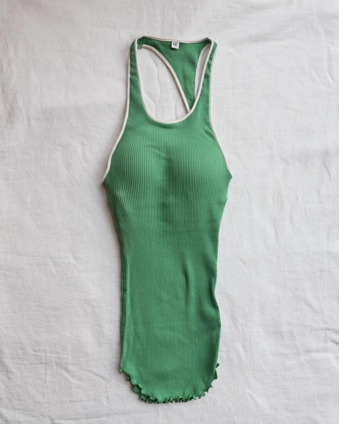 HAKUJI:TWIST COTTON ASYMMETRY BRA TANK - GREEN
