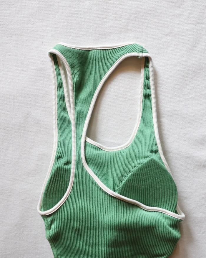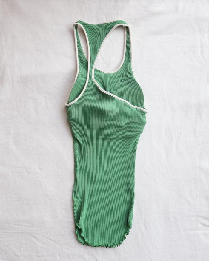 カップ付きのリブタンクトップ。