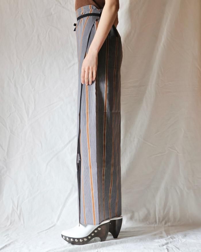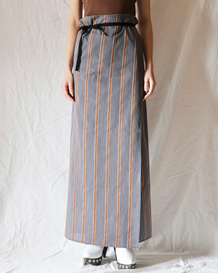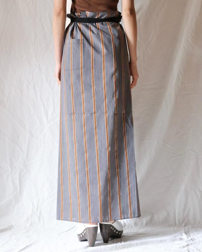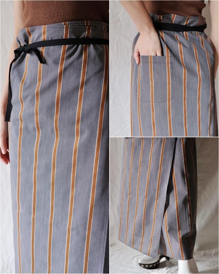 ストライプの巻きスカート。(広げると長方形の布のようになります。)
