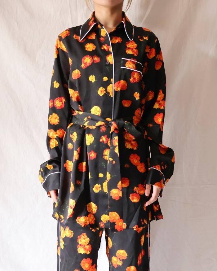 とろみのあるサテン生地のシャツ。