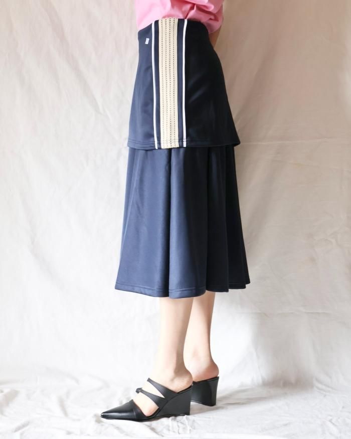折り返したようなデザインのトラックスカート。