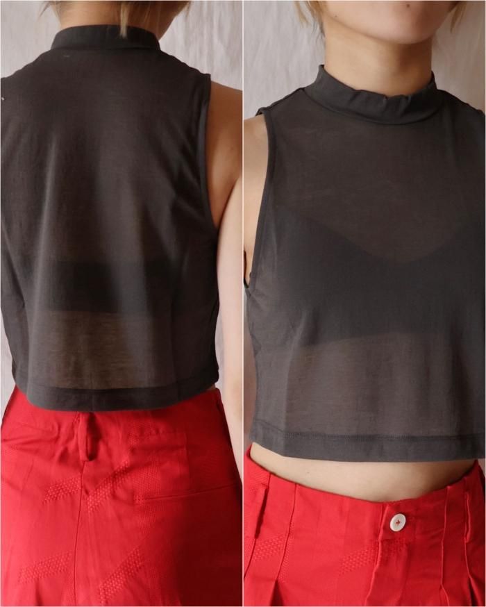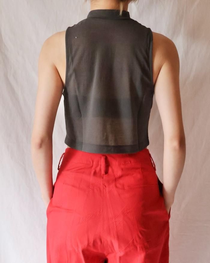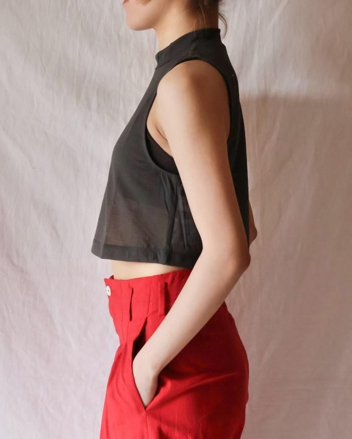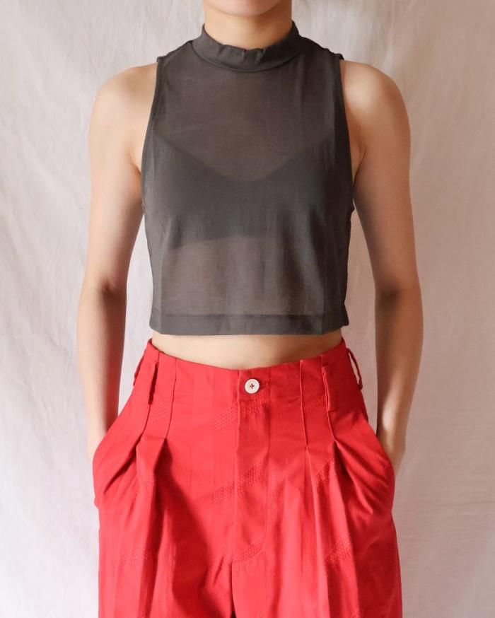Ernie Palo:SHEER MOCK NECK SLEEVELESS - GREY