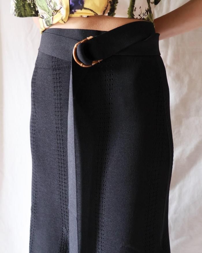 WALES BONNER:DUSK KNIT SKIRT - BLACK