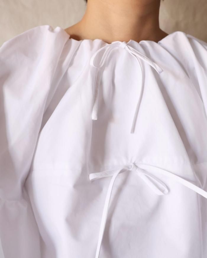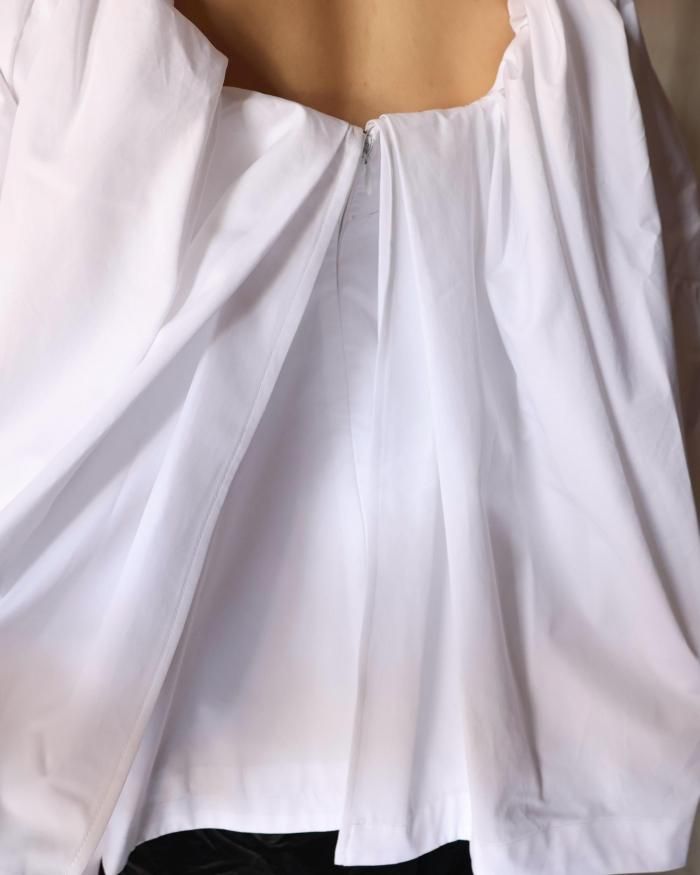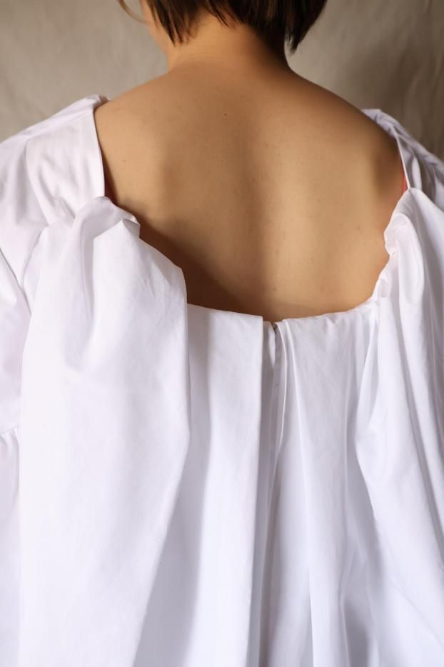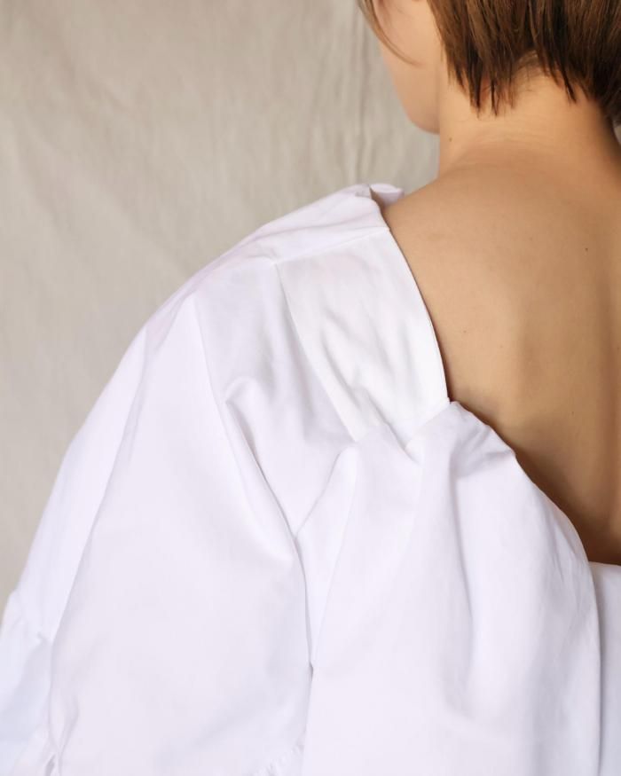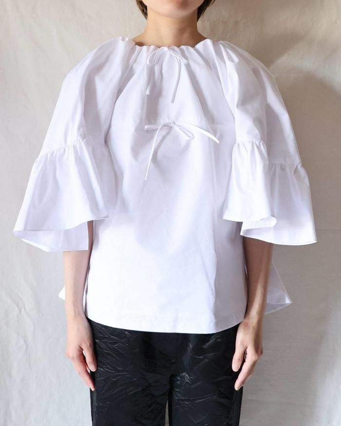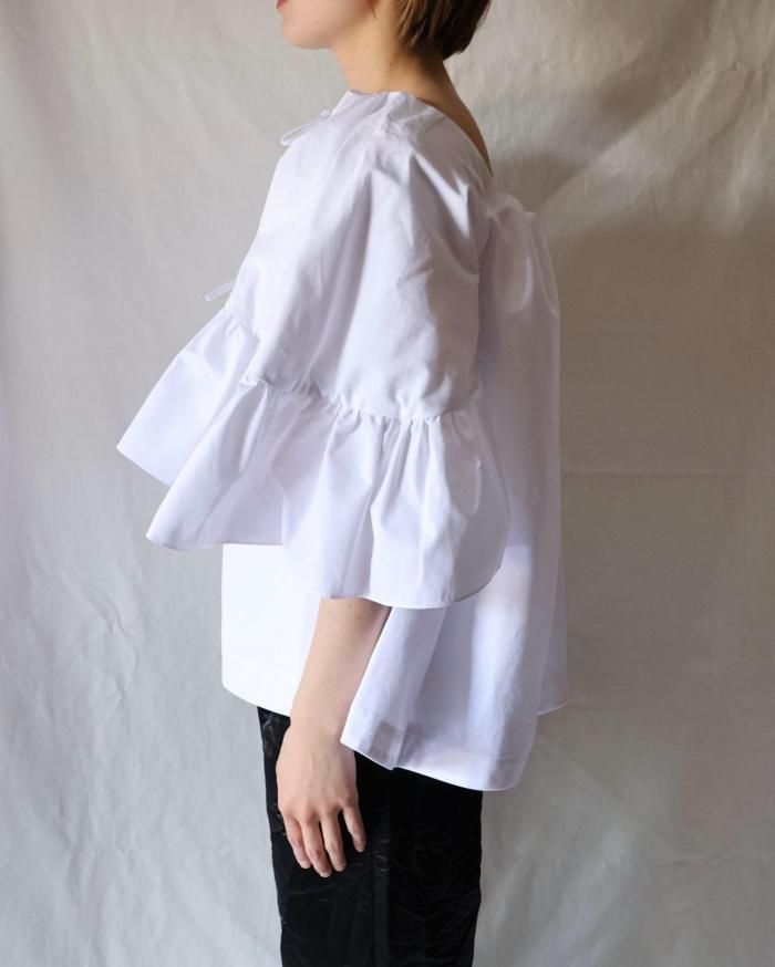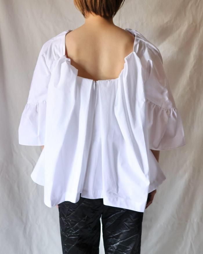 バックオープンのフリルブラウス。