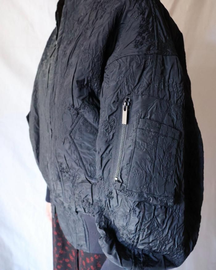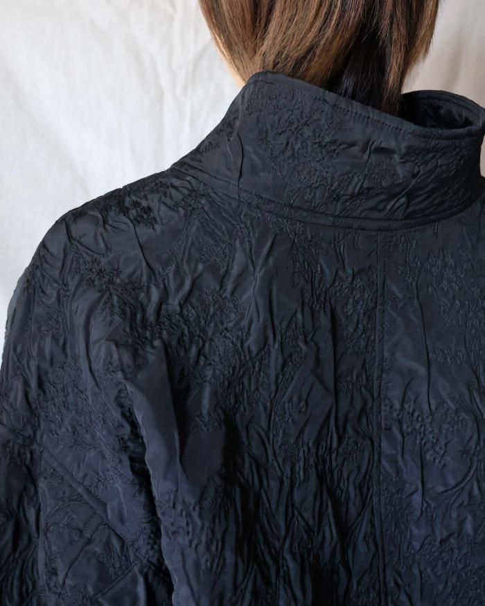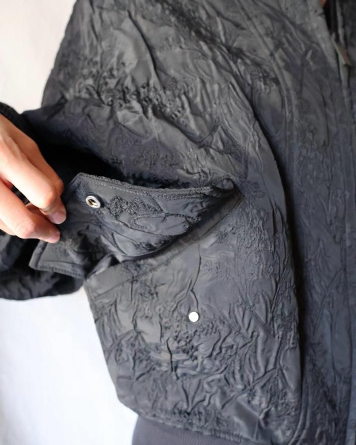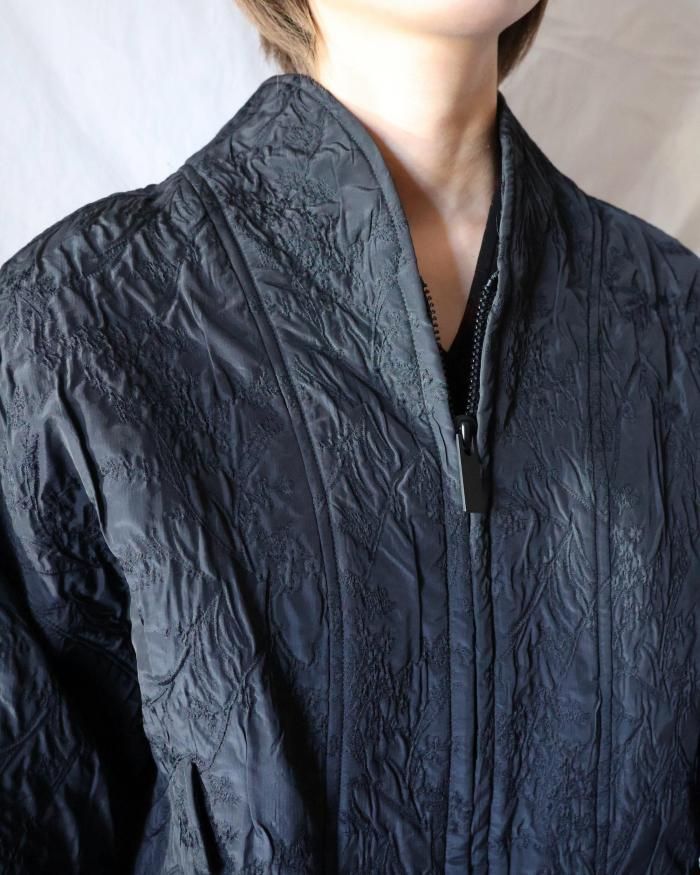膨らみのある柄の凹凸感や軽やかな着心地が特徴的な生地のジャカードブルゾン。