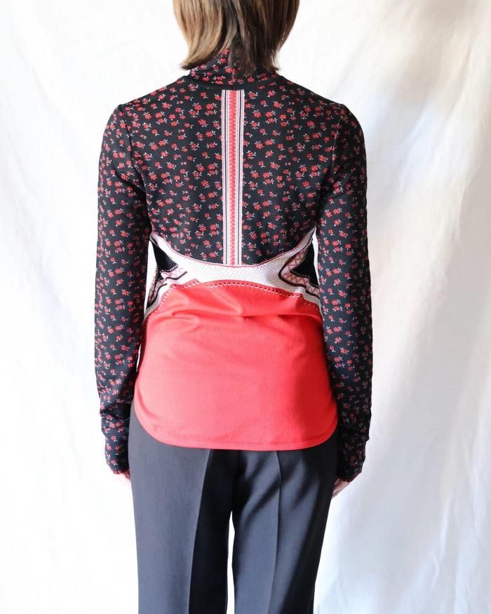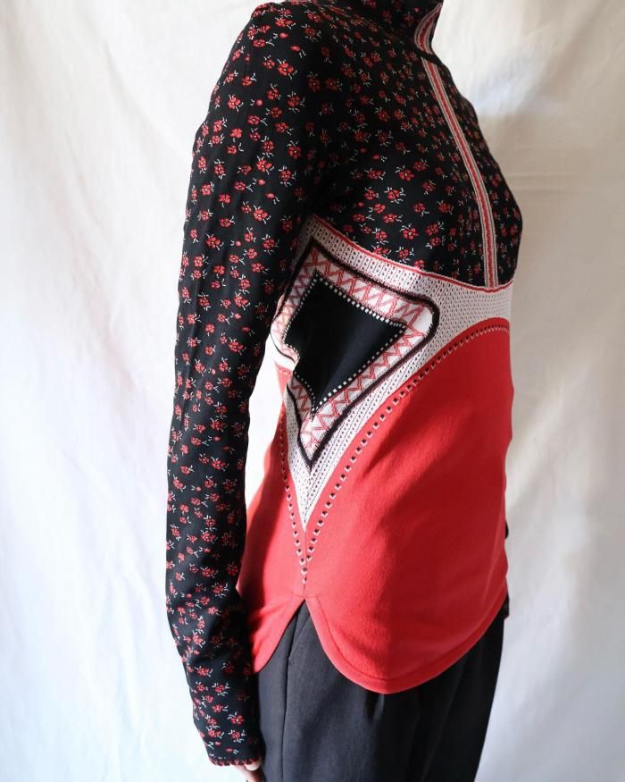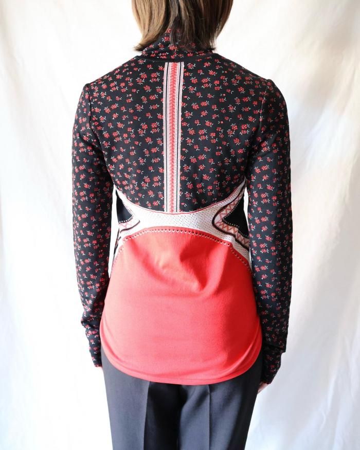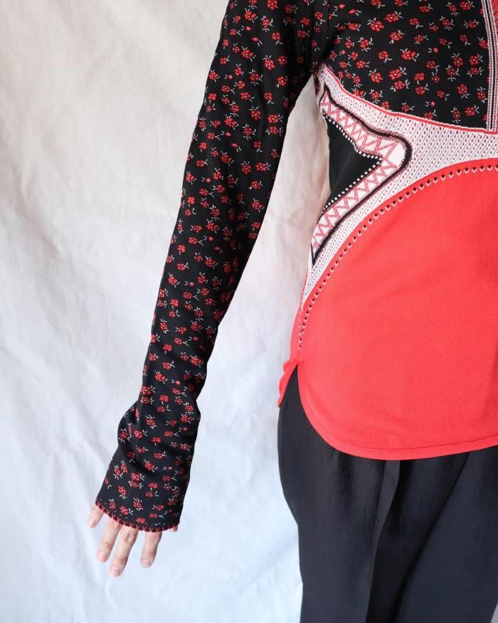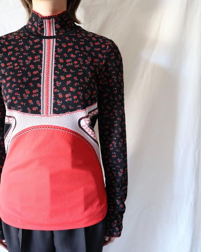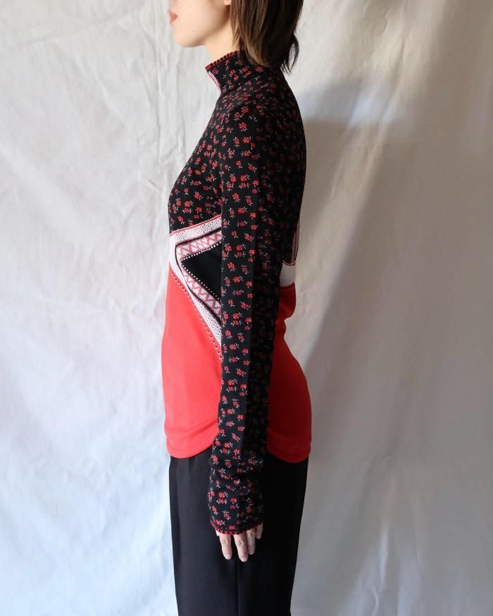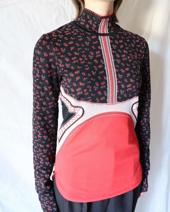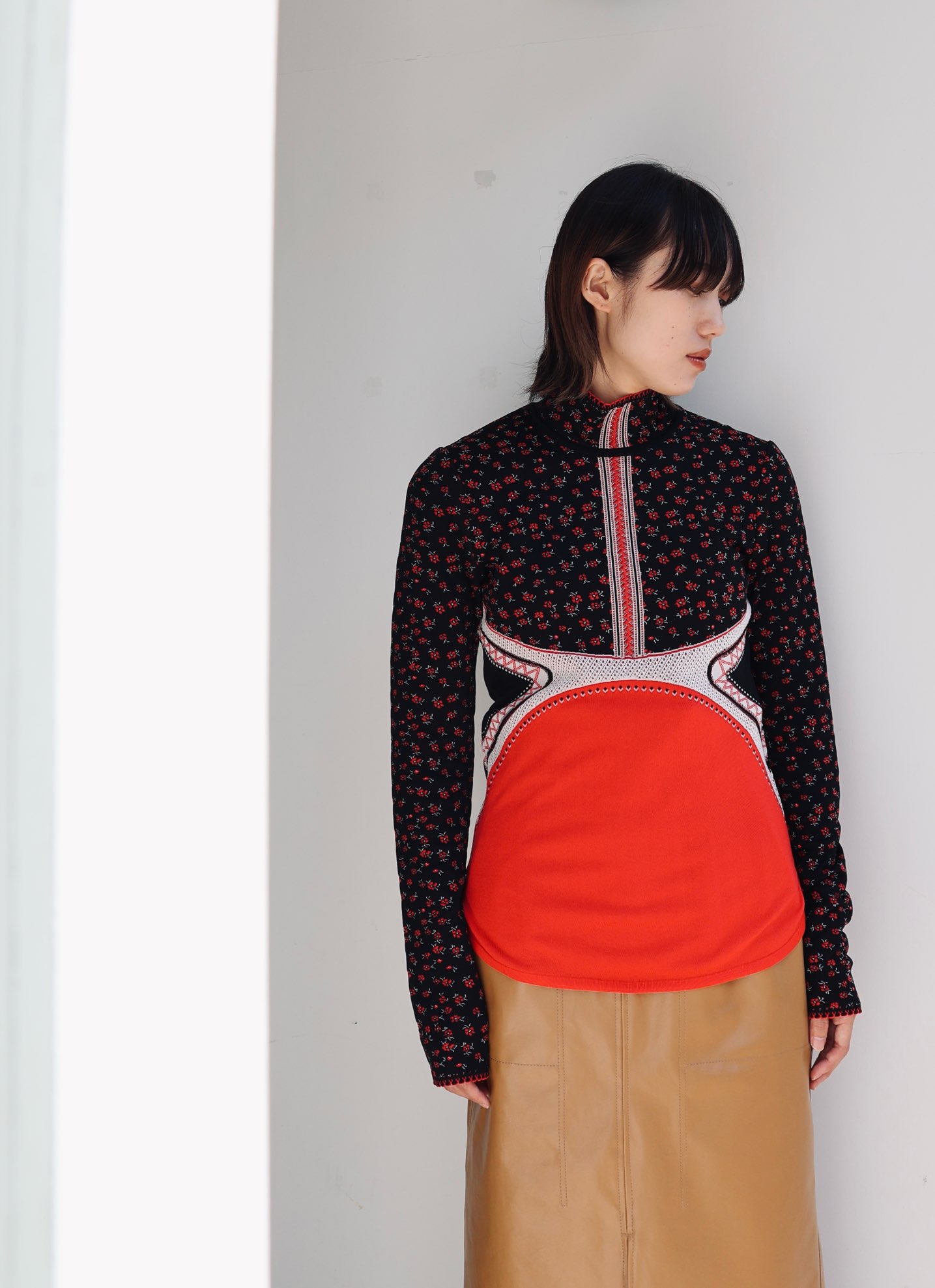 Mame Kurogouchi:Floral Jacquard High Neck Knitted Top - BLACK