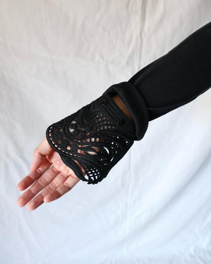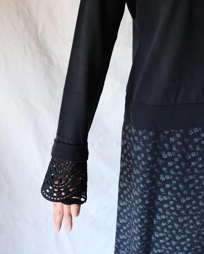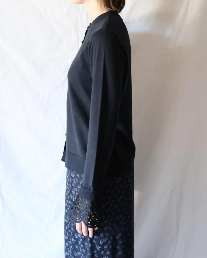 Mame Kurogouchi:Detachable Embroidery Cuff Knitted Cardigan - BLACK