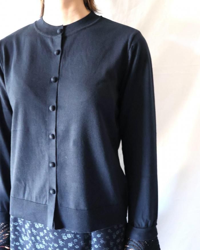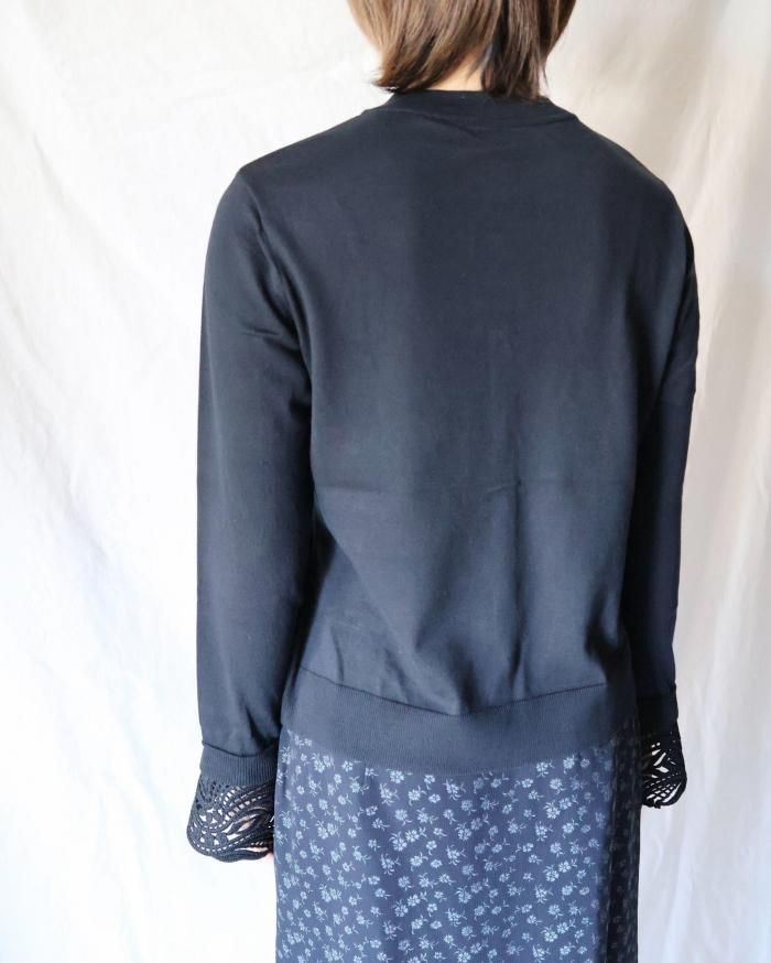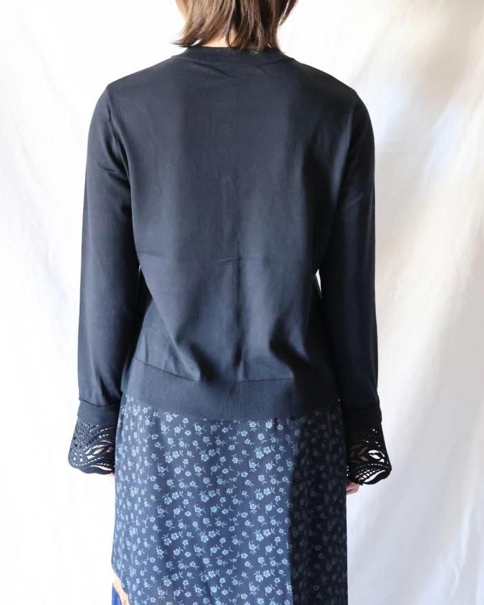 袖口にクラシカルな刺繍がついたニットカーディガン。