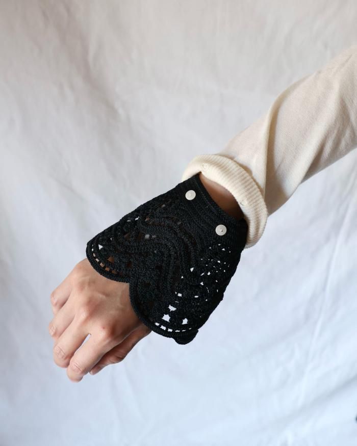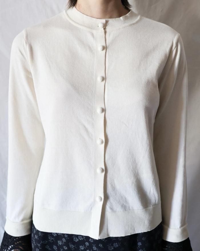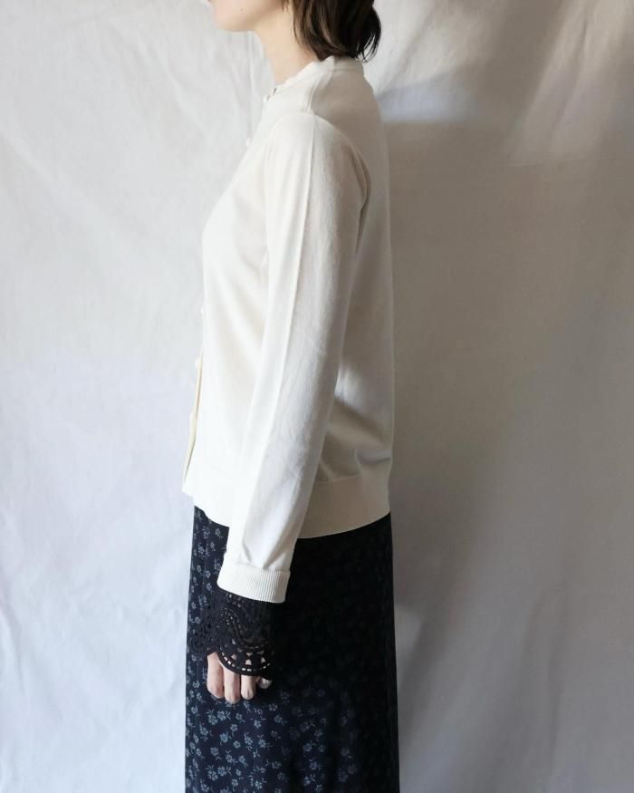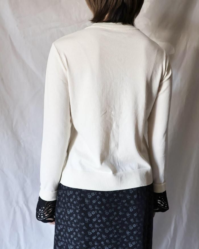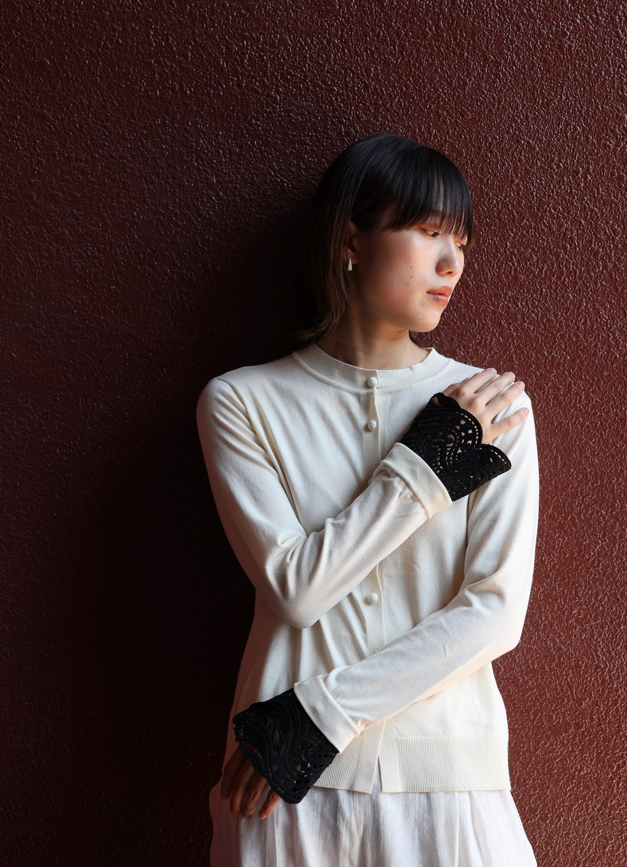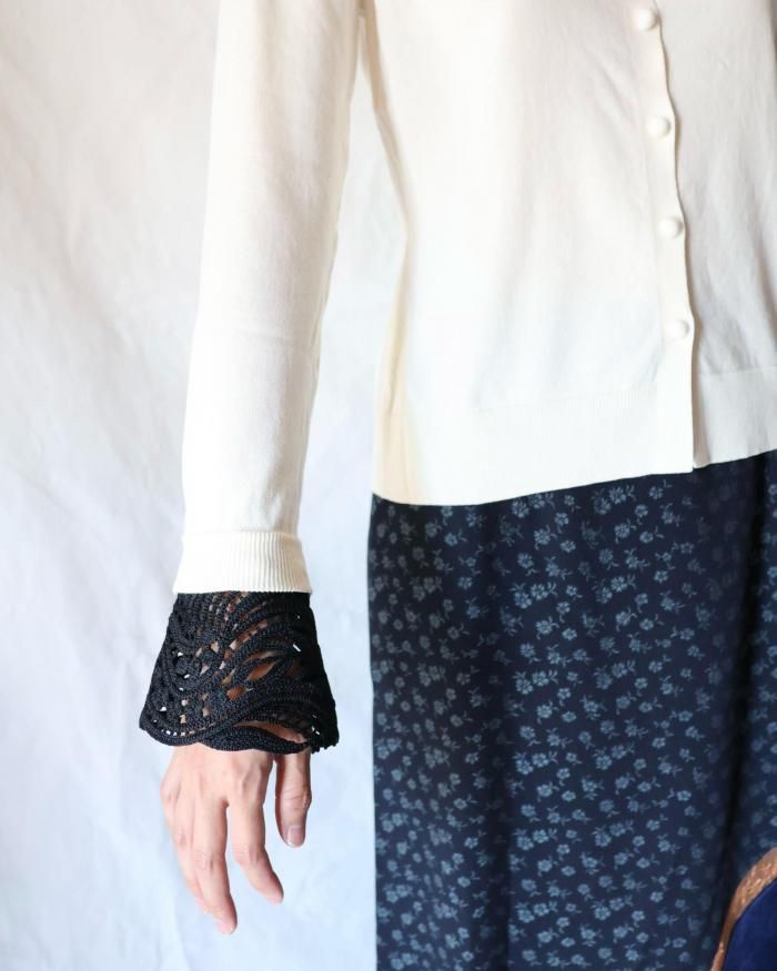袖口にクラシカルな刺繍がついたニットカーディガン。