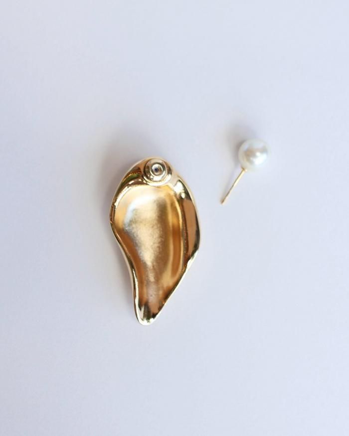 シーズンを象徴する”かたち”から貝殻や花びらの様なフォルムが印象的なアシンメトリーピアス。