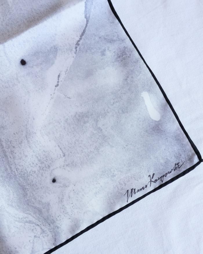 ブランドオリジナルの墨流しの柄を繊細なタッチで表現したシルクスカーフ。