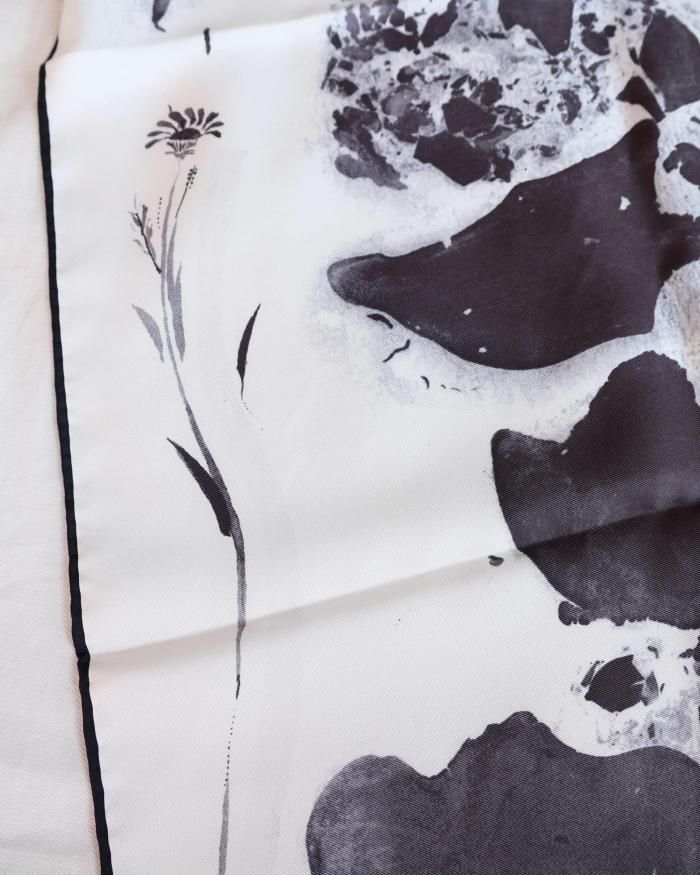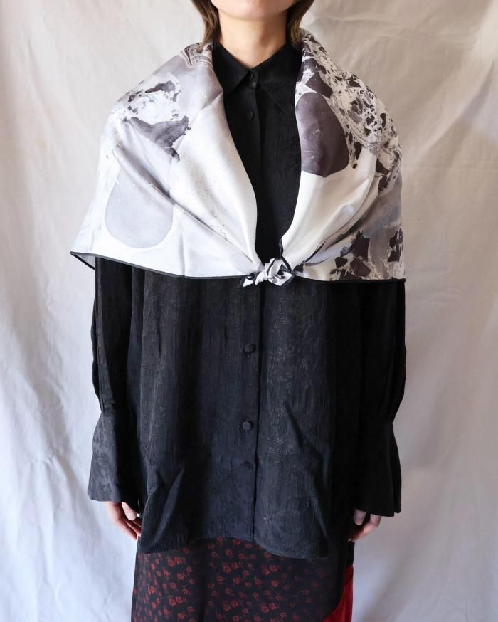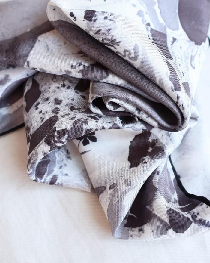 Mame Kurogouchi:Hand Printed Silk Scarf - GREY