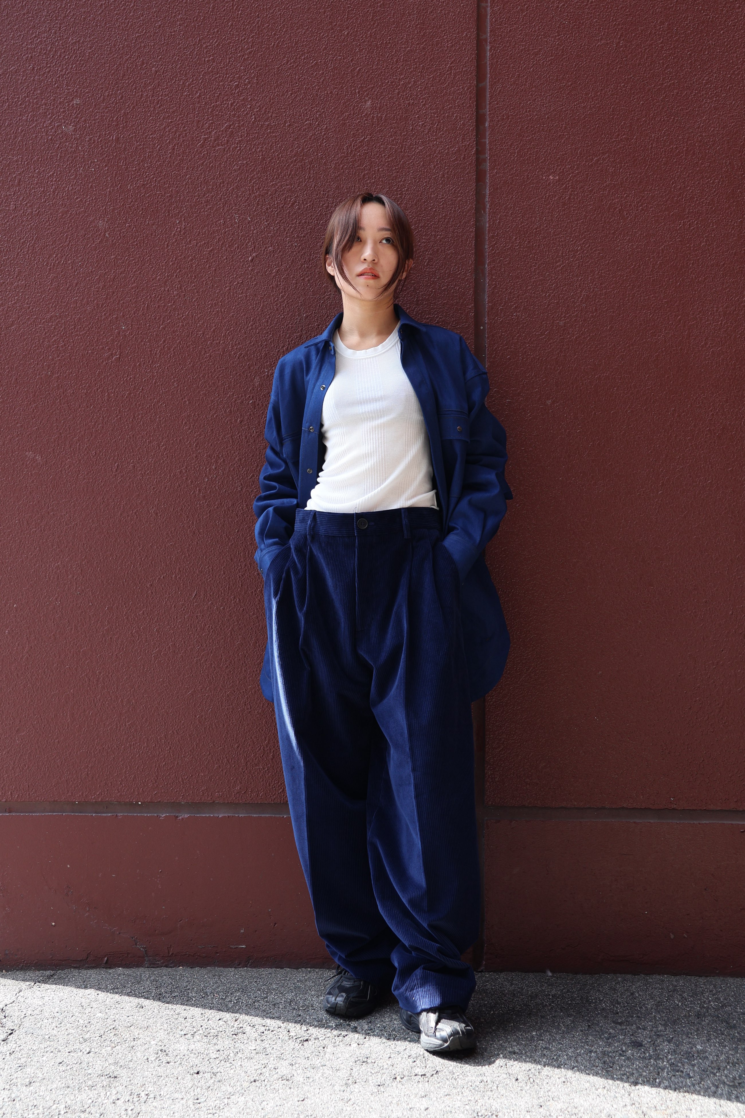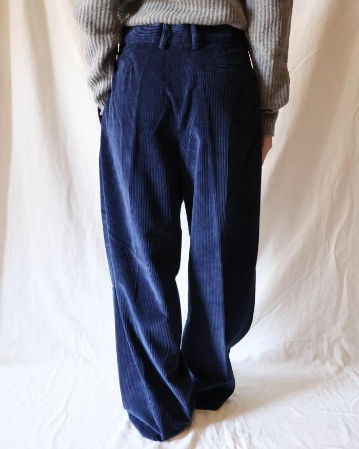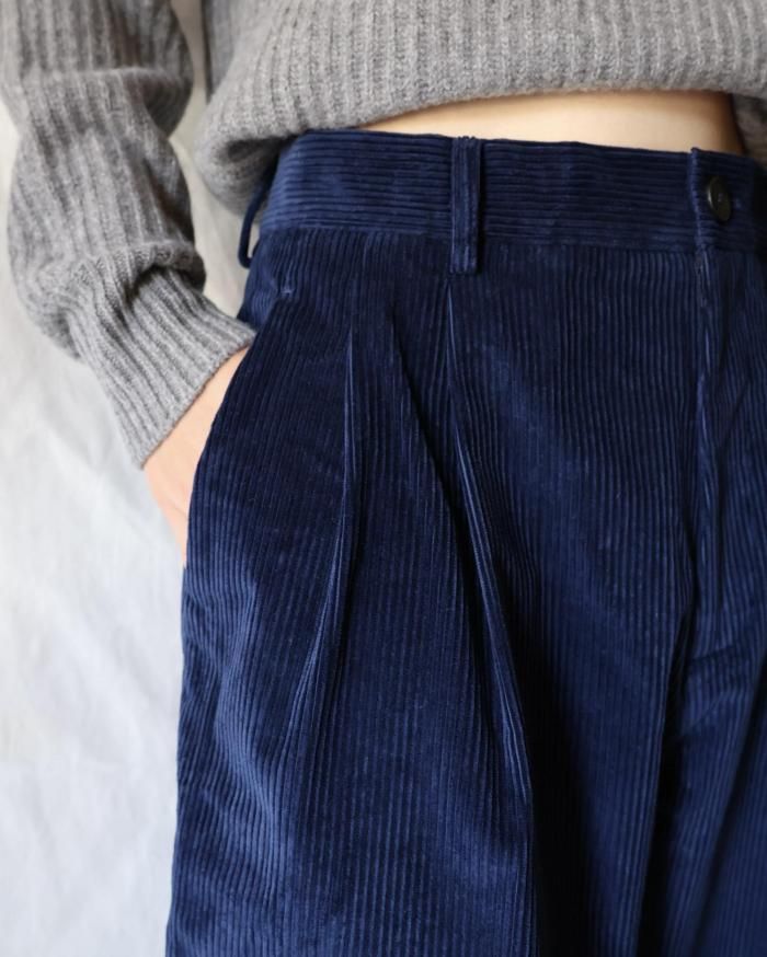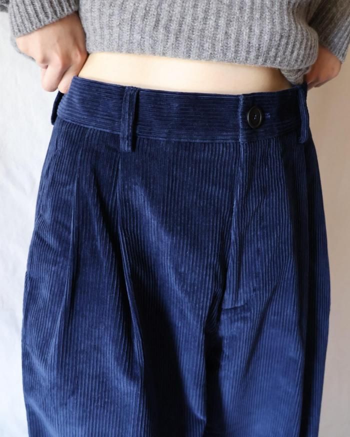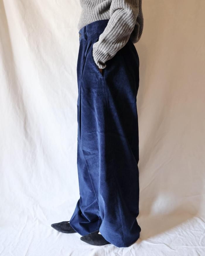 Cristaseya:DOUBLE PLEATED WIDE PANTS - INDIGO