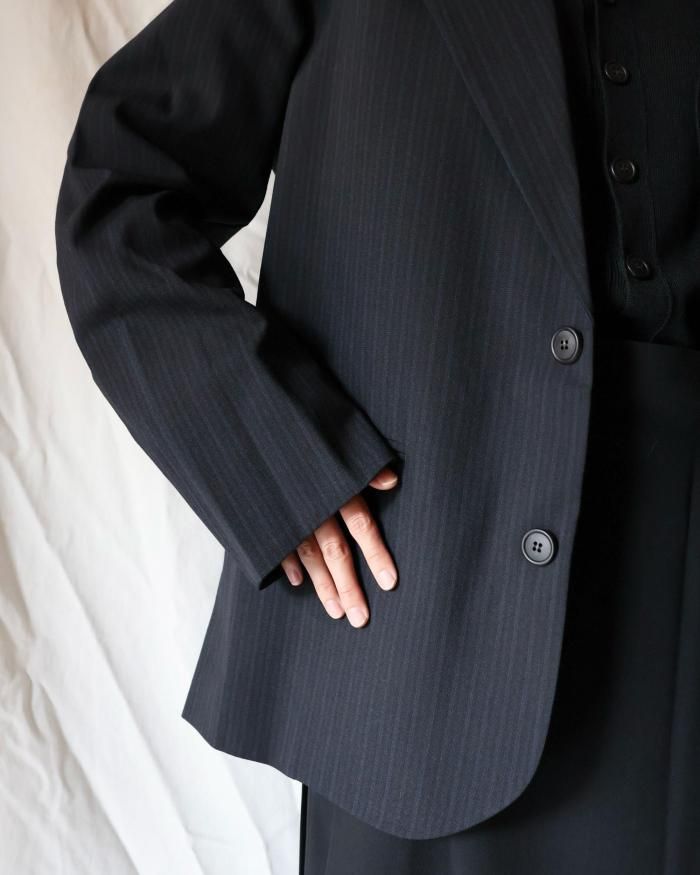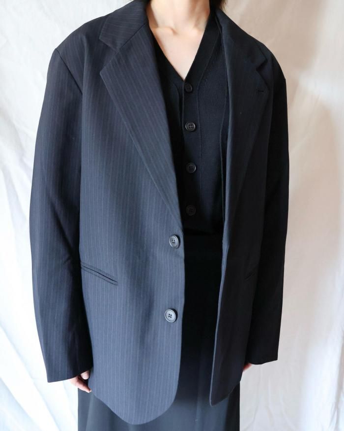 Cristaseya:OVERSIZED BLAZER - BLACK/NAVY STRIPES