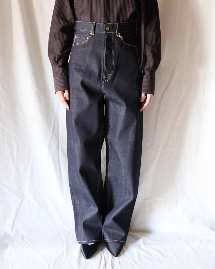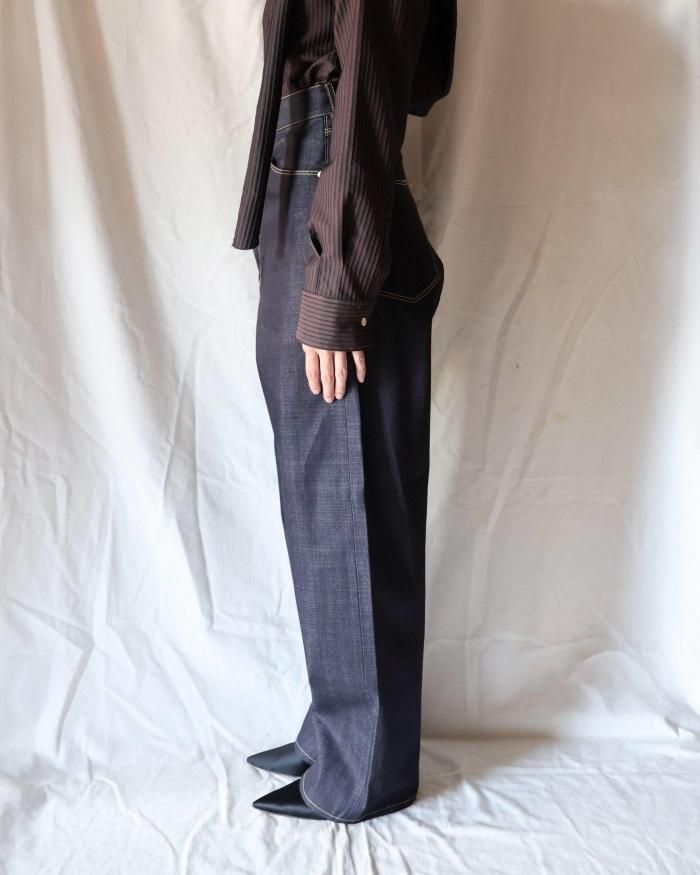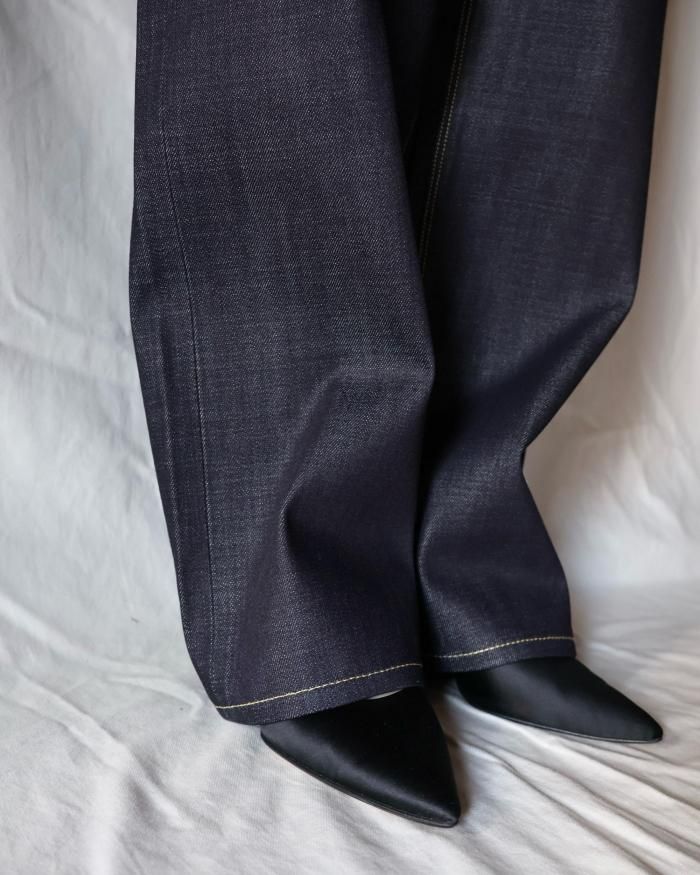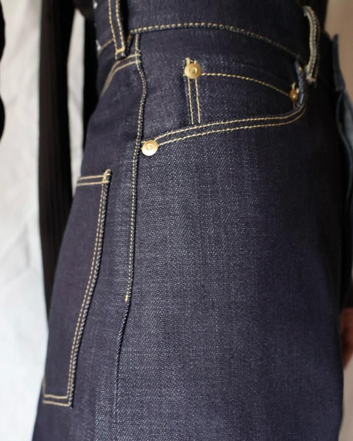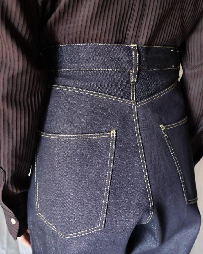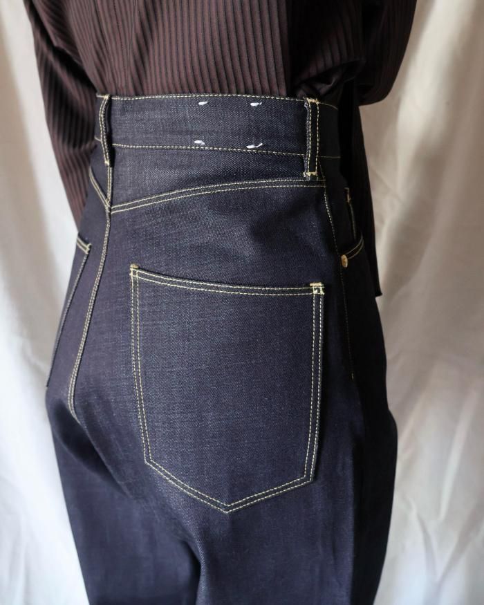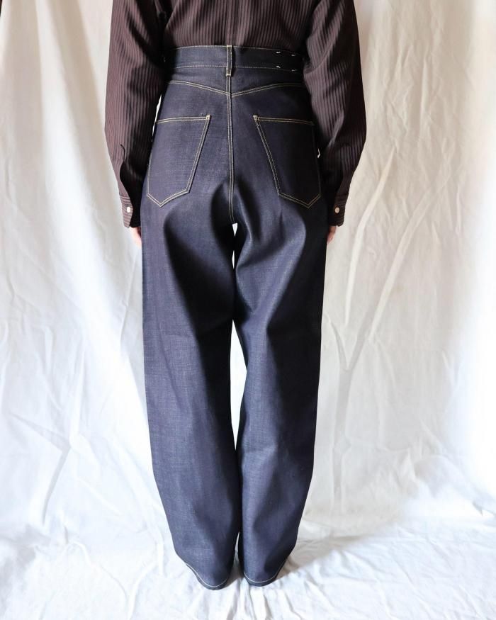 メンズライクな雰囲気の中にも腰に沿う後ウエストのシルエットが女性らしさのある一本。