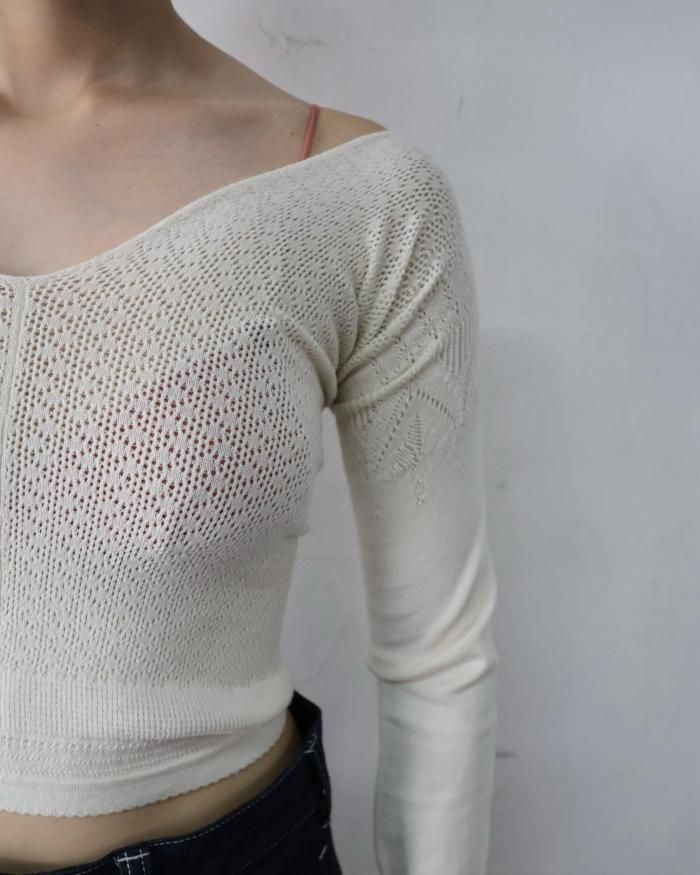 レースのような透かし編みが素敵なニット。