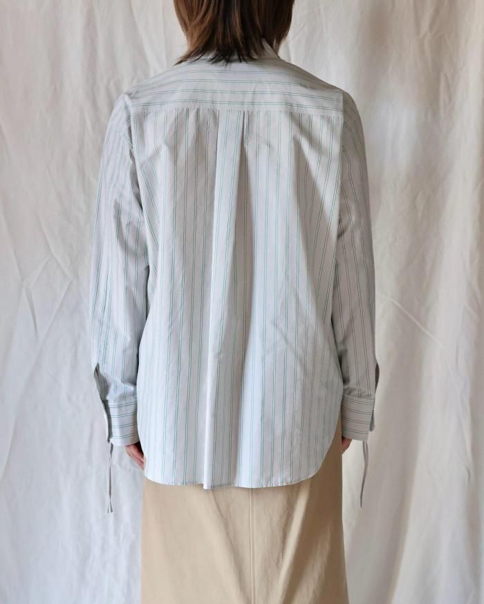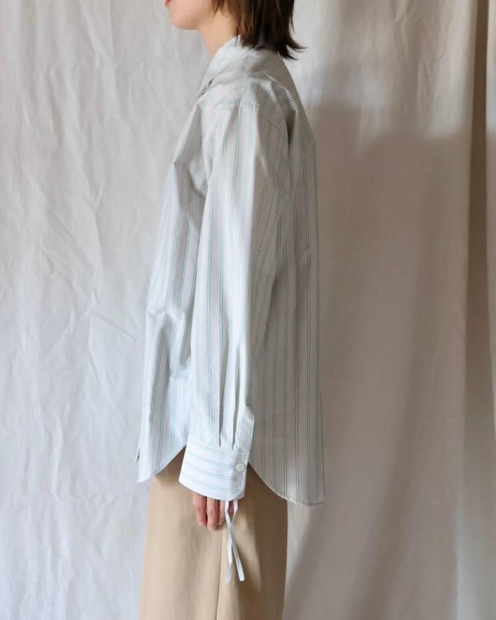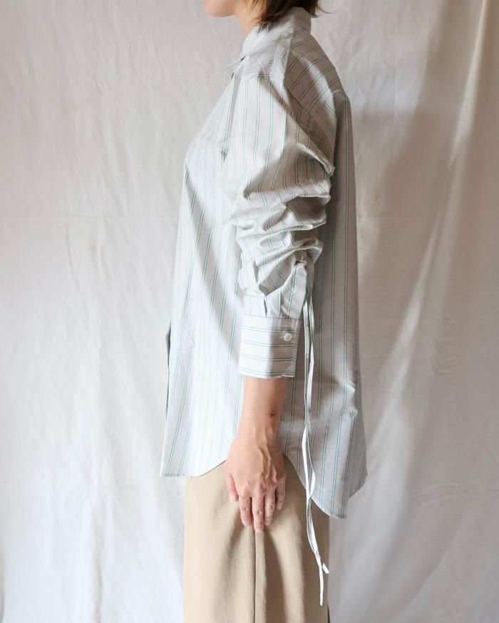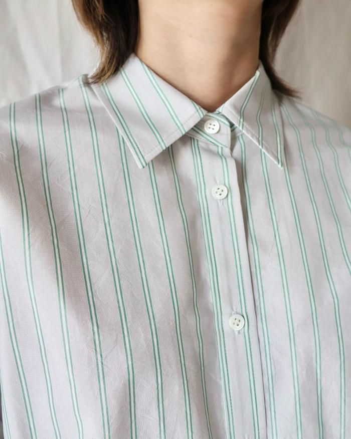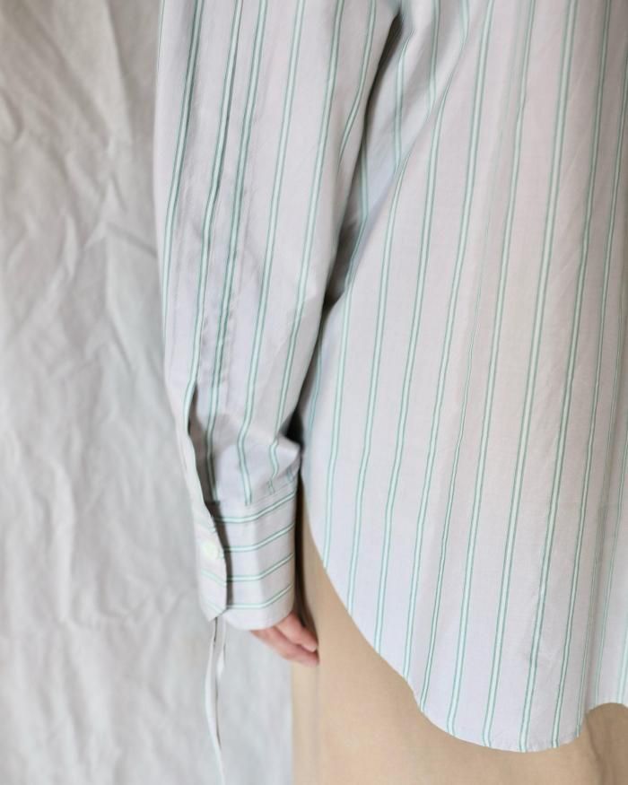 Ernie Palo:SILK COTTON STRIPE SHIRT - GREEN