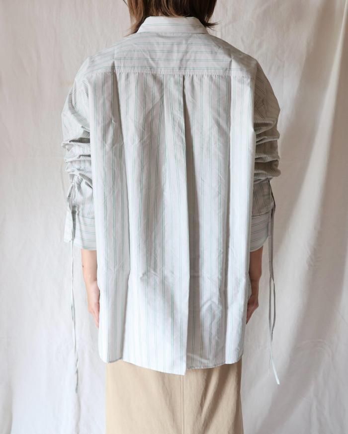 袖についた紐でシャーリングでき、変化が楽しめます。