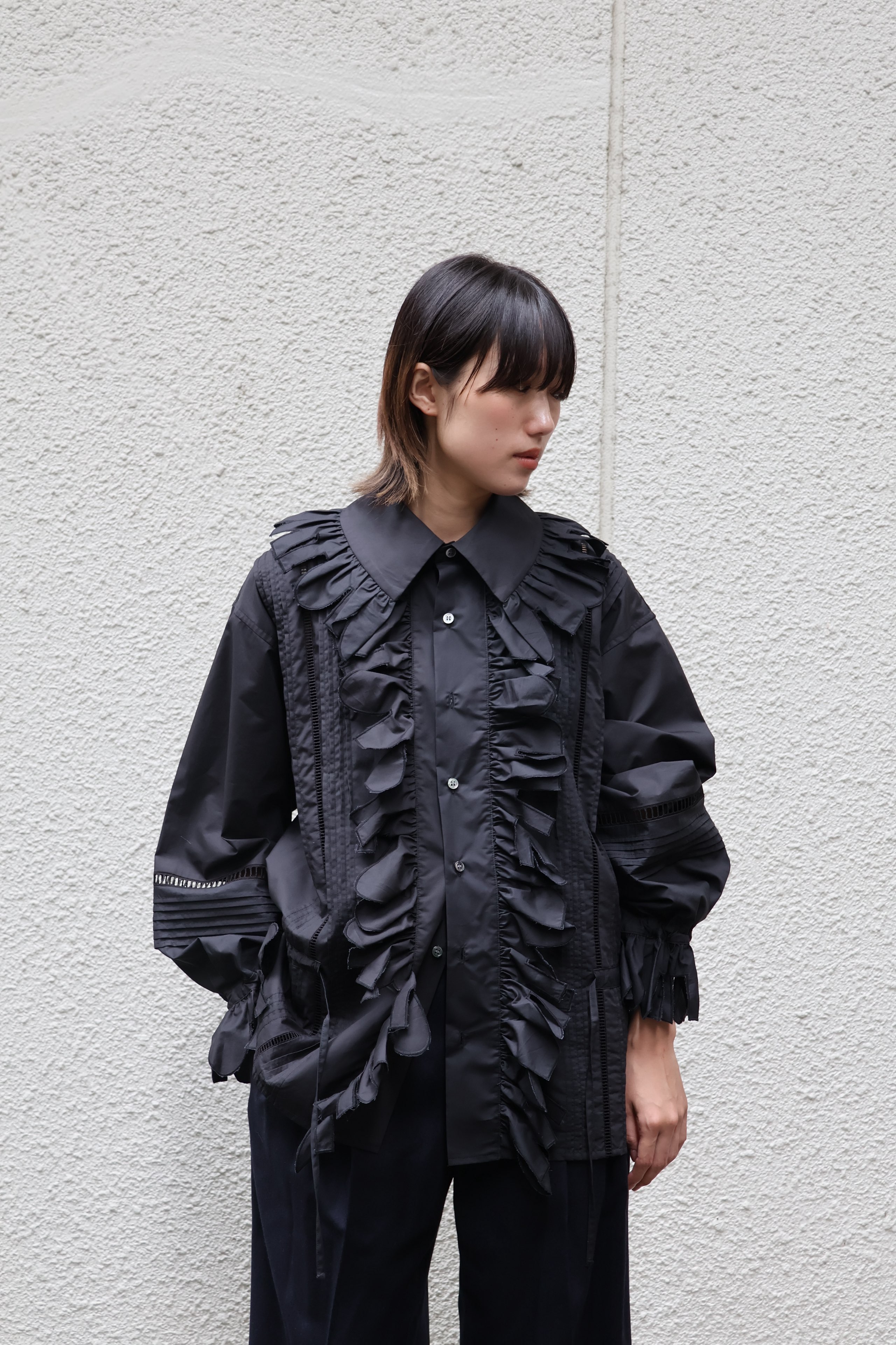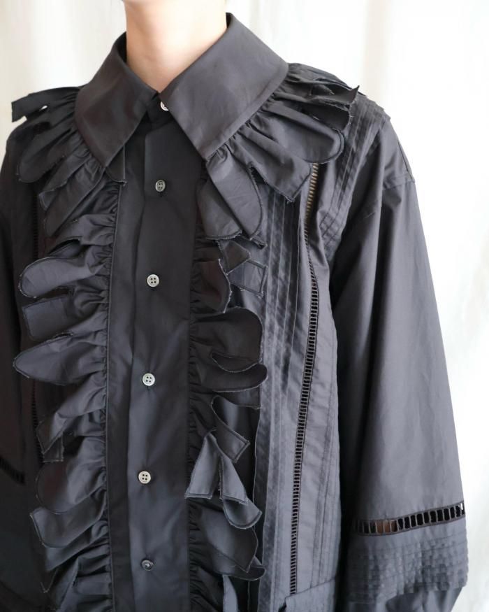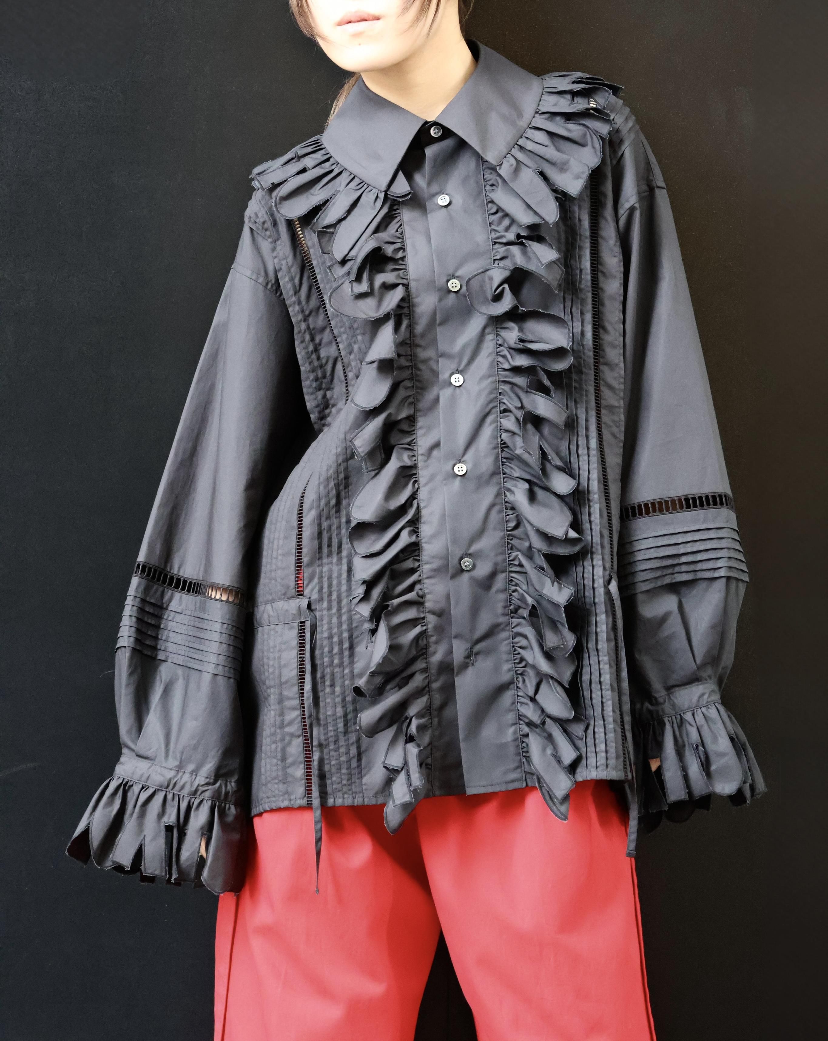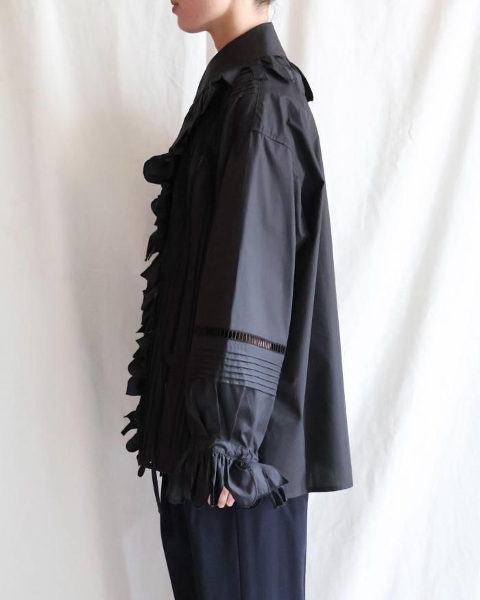 JUN MIKAMI:RUFFLE SHIRT - BLACK