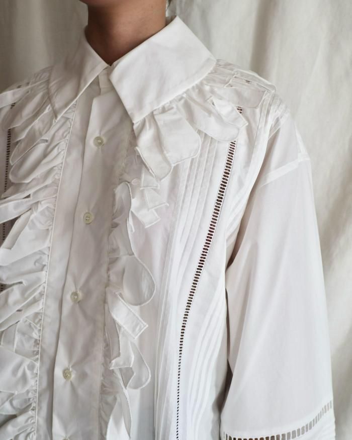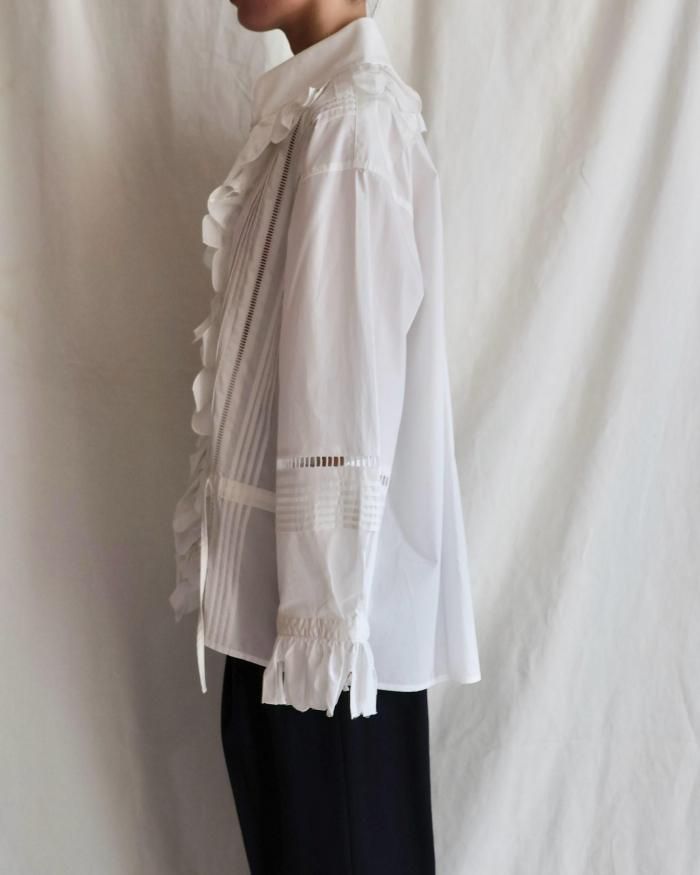 JUN MIKAMI:RUFFLE SHIRT - WHITE