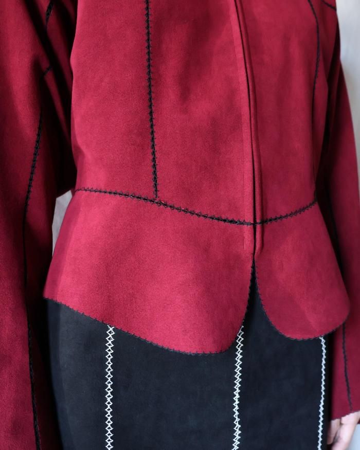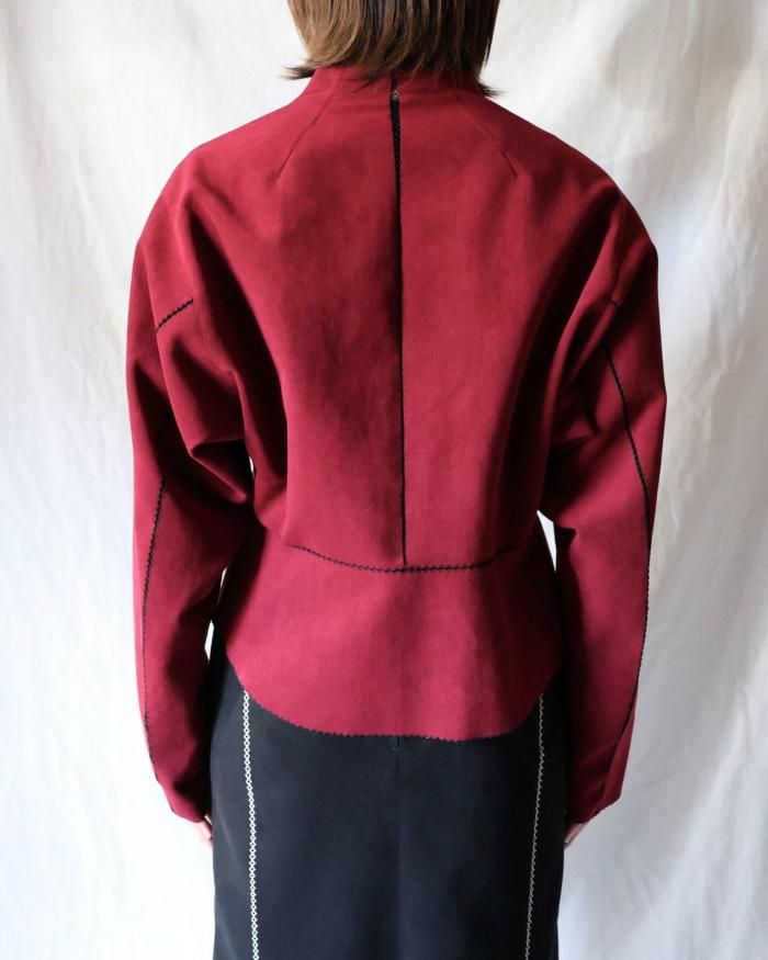 Mame Kurogouchi:Synthetic Leather Fancy Ftitch Jacket - BORDEAUX