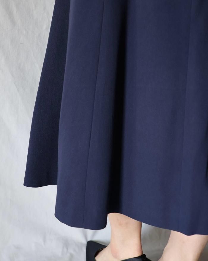 Mame Kurogouchi:Wool Venetian Flare Dress - NAVY
