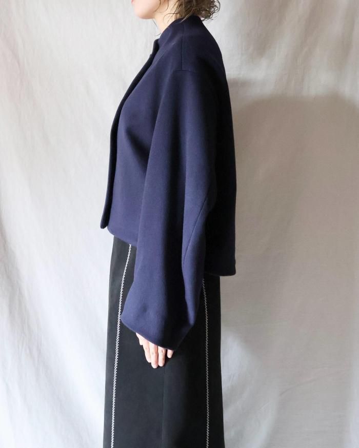 上品な首元やショートの着丈感など、カジュアルなスタイルにもドレスアップ時のアウターとしても使えるコートです。