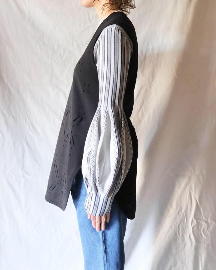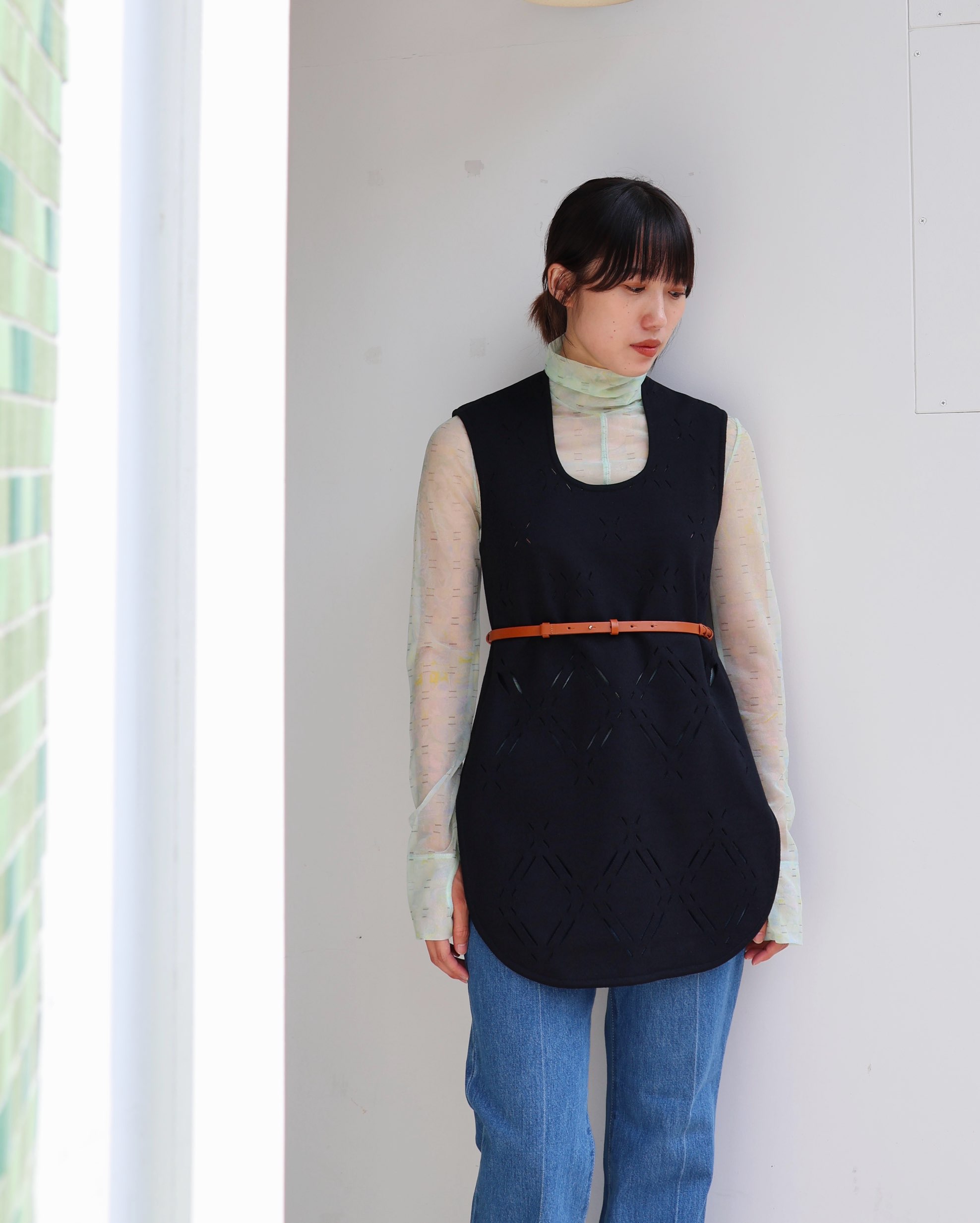 抽象的な格子模様をアイレット柄で表現したノースリーブトップ。