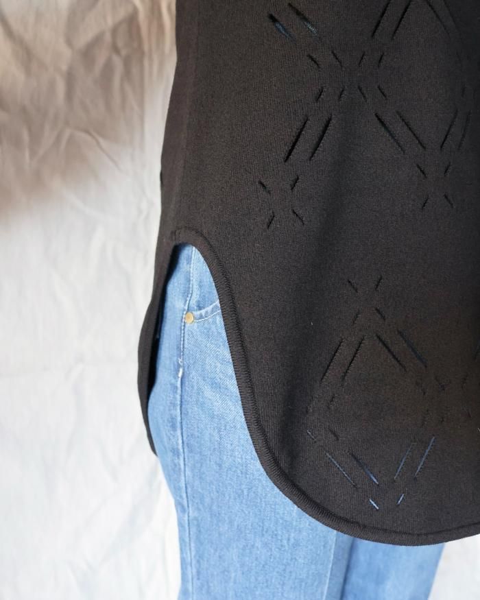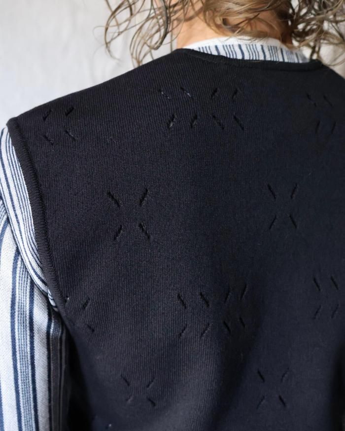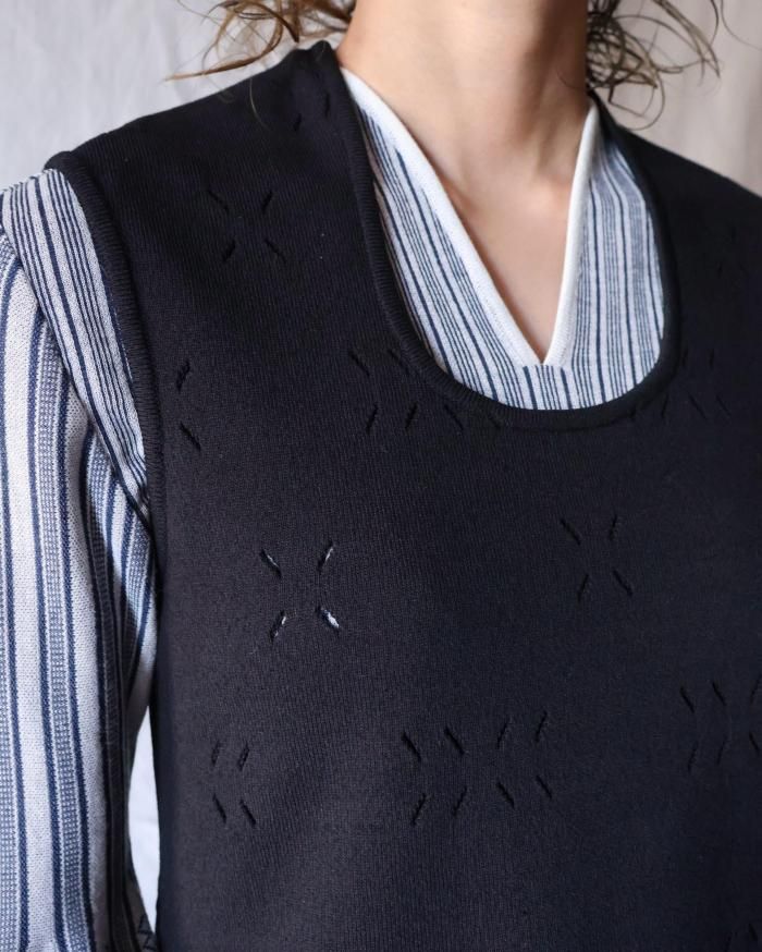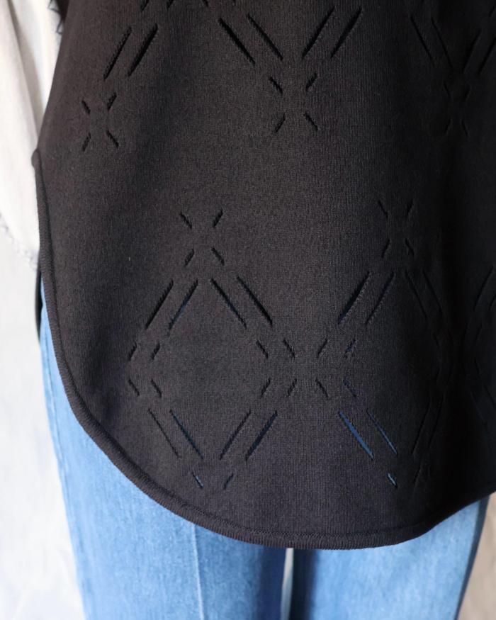 Mame Kurogouchi:Eyelet Sleeveless Knitted Top - BLACK