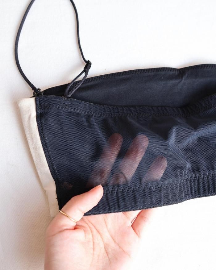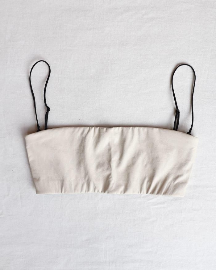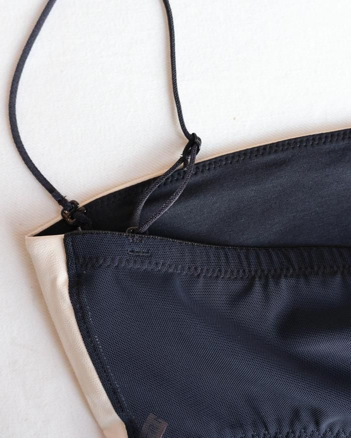 フロントにフェイクレザー、バックにストレッチ性のあるネット生地を使用したバンドゥ。