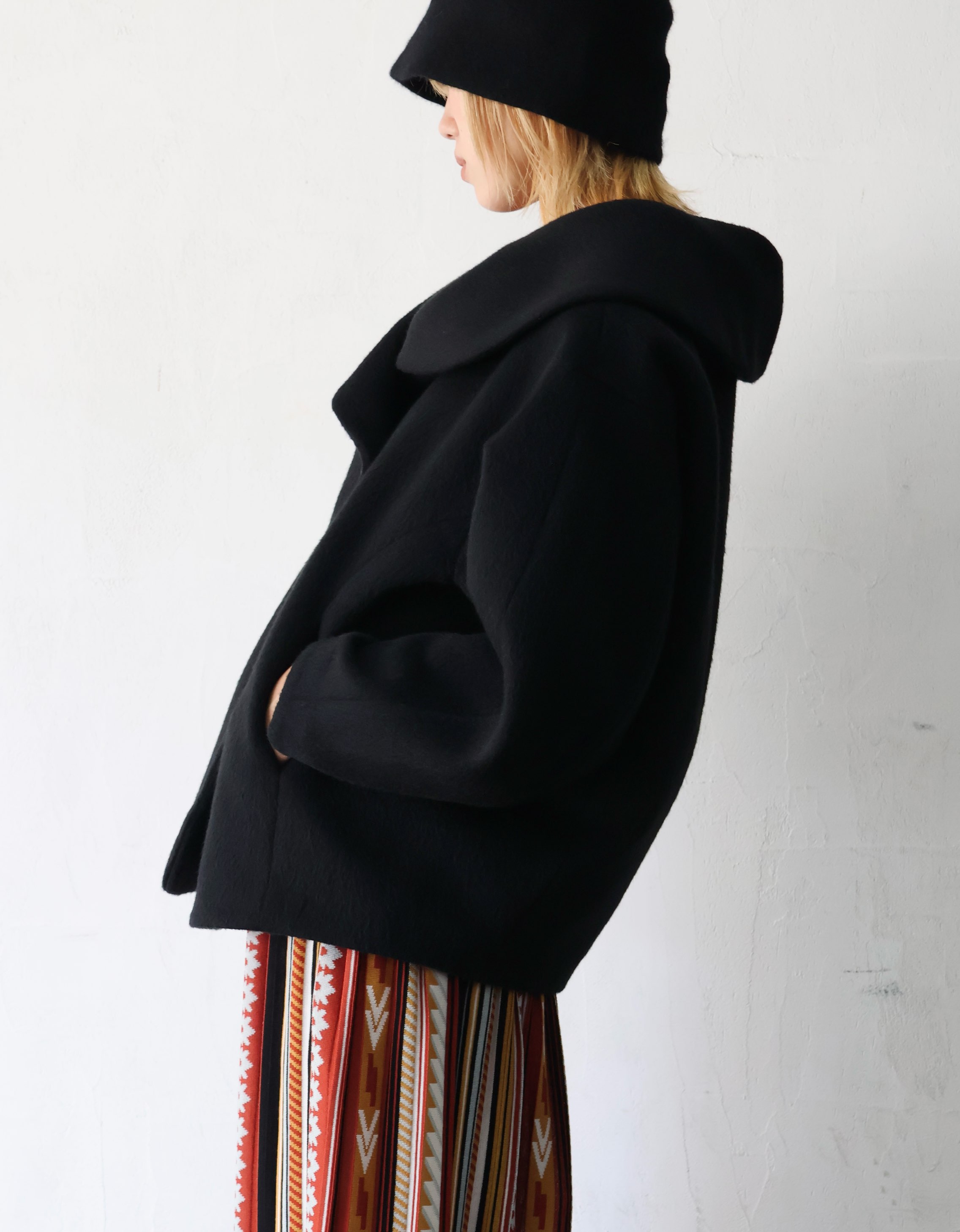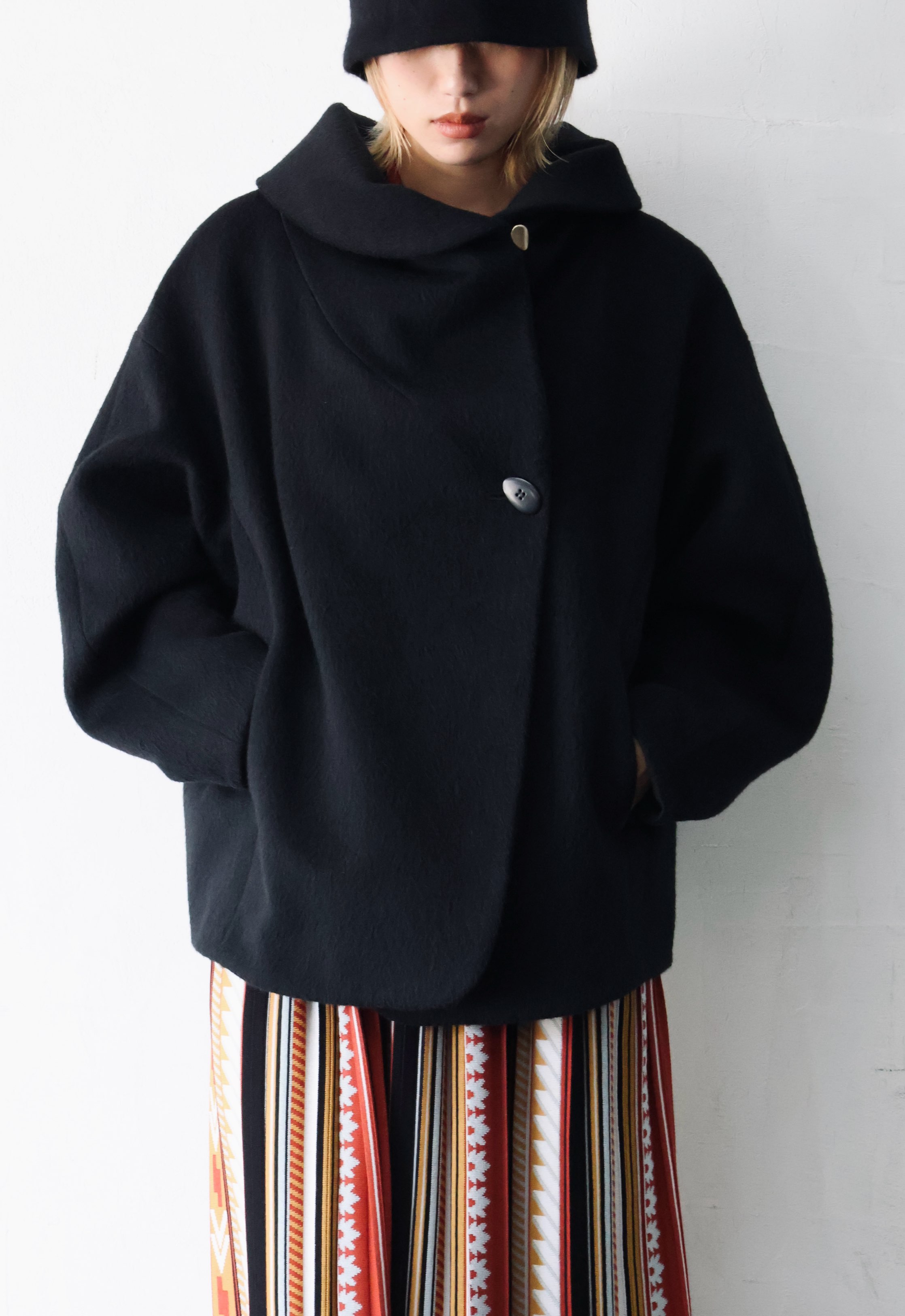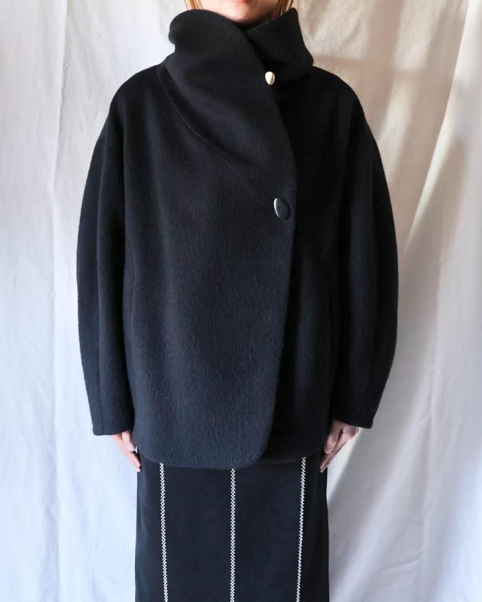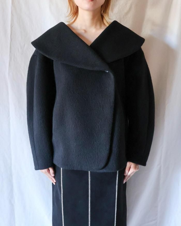 コクーンシルエットのショートコート。