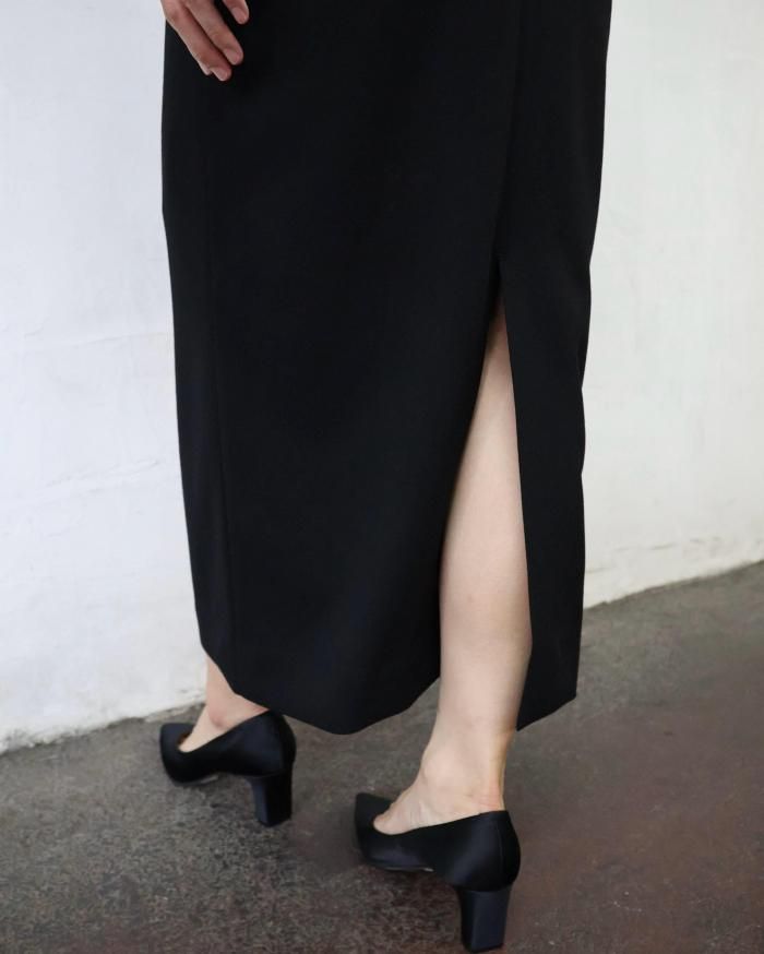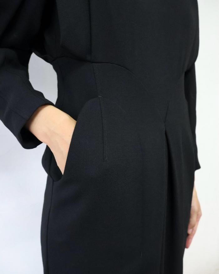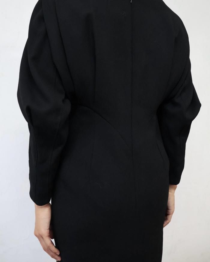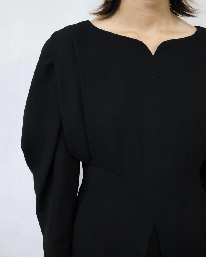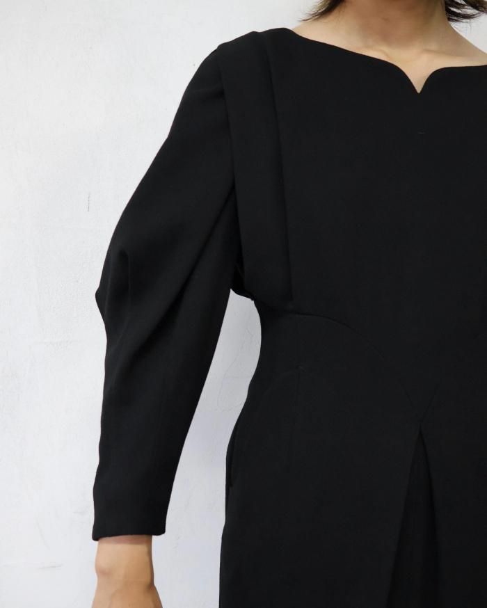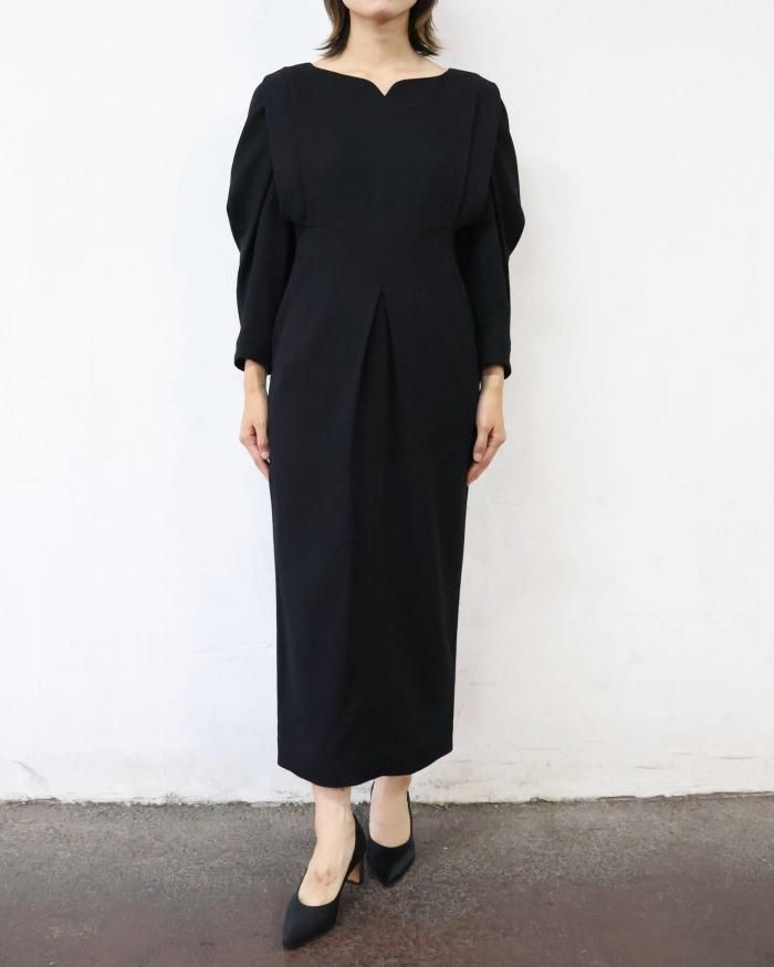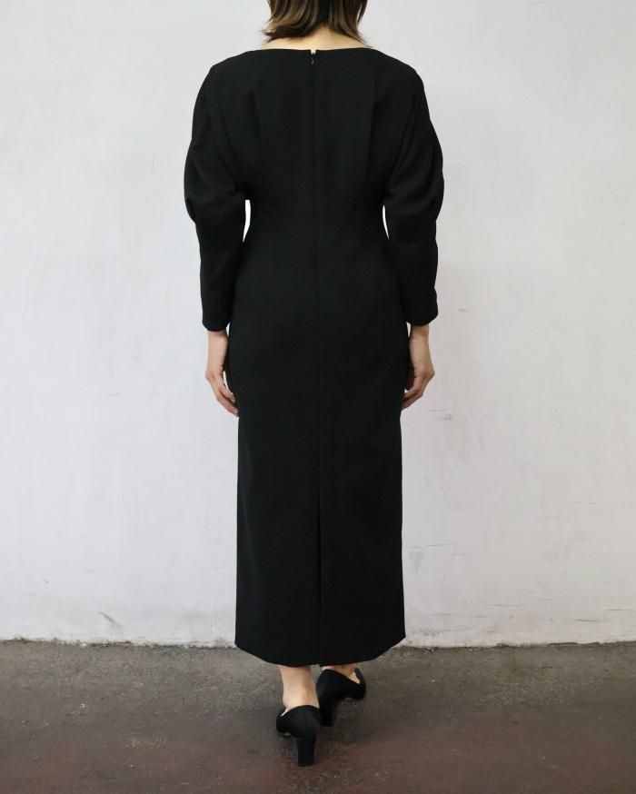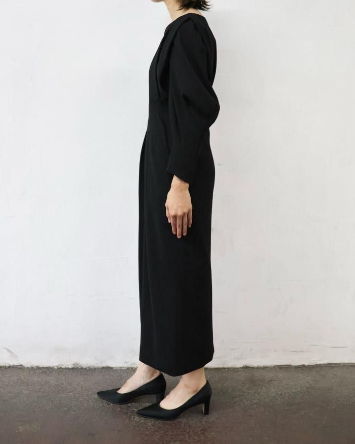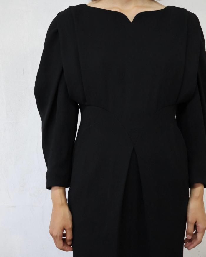Mame Kurogouchi:Wool Georgette Dress - BLACK