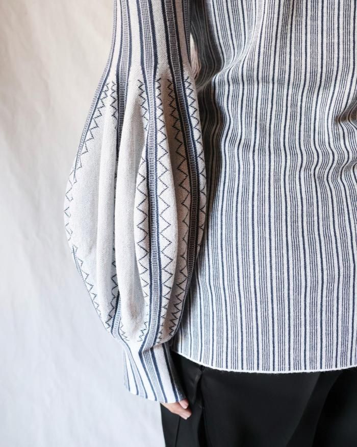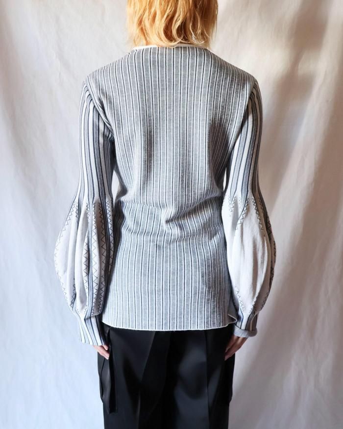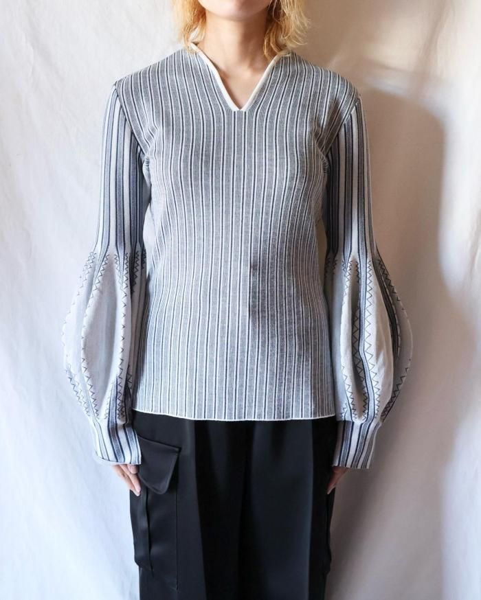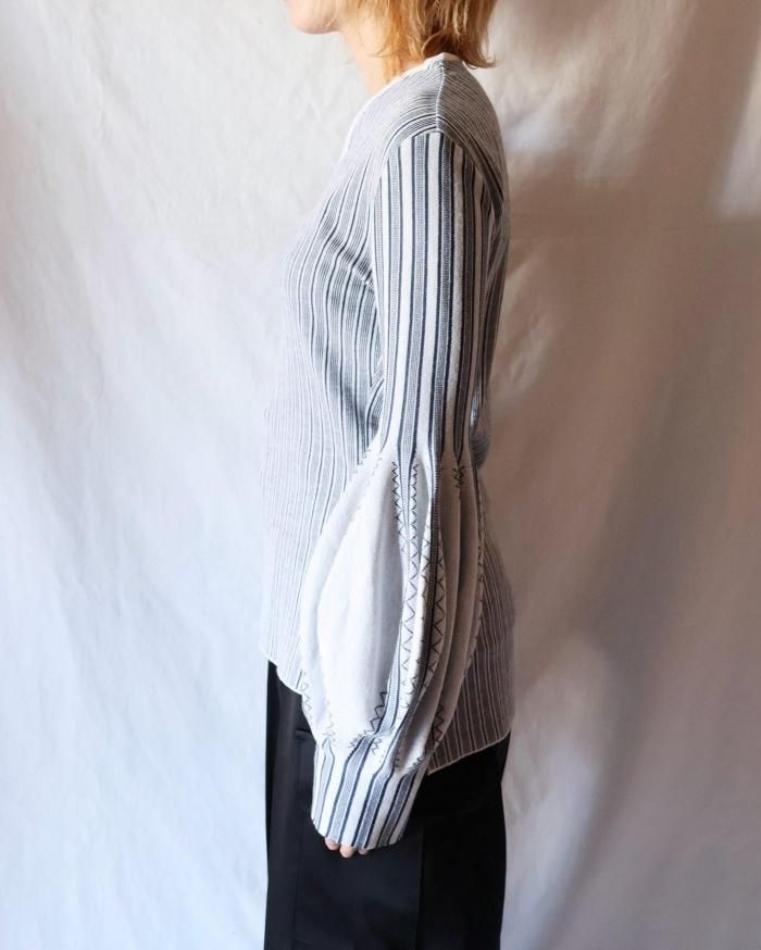 今季のテーマである”かたち”を象徴する袖のデザインがスペシャルなニットです。