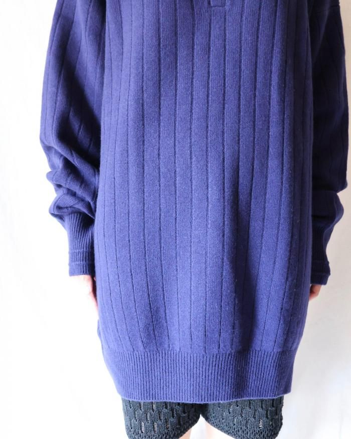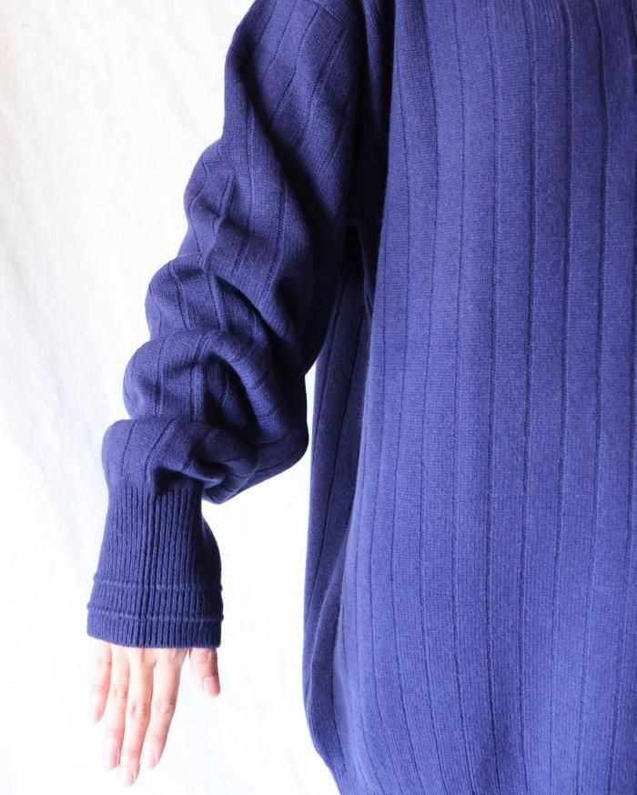 肩の切り替え部分は総針編みに切り替えられており、さりげないディテールポイントをプラス。