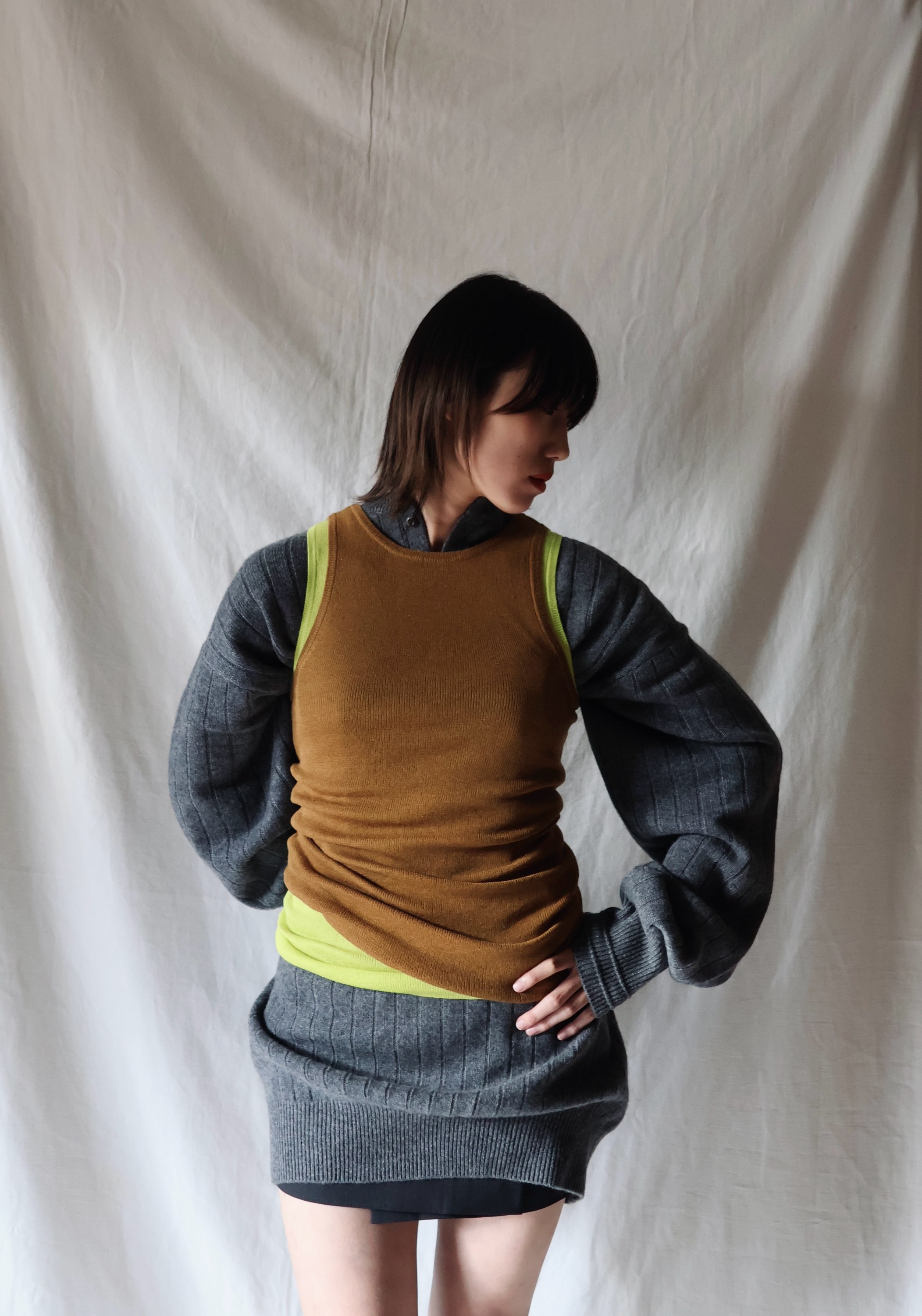 カシミヤの柔らかさに、シルクの繊細な光沢が加わった、ベーシックタンクトップ。