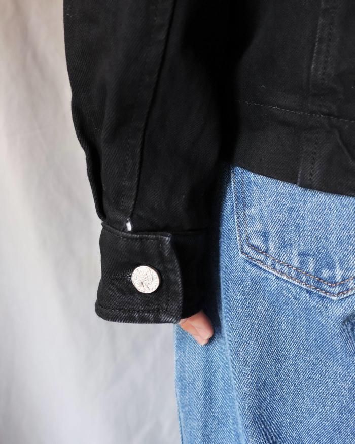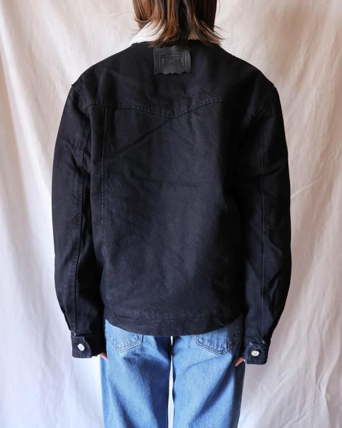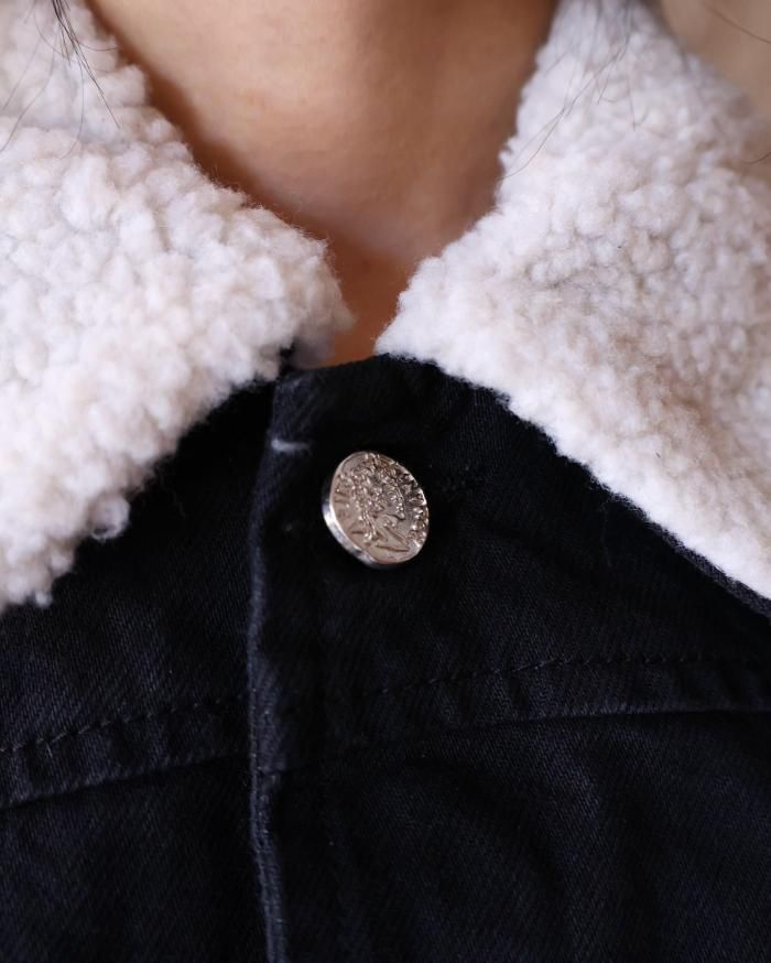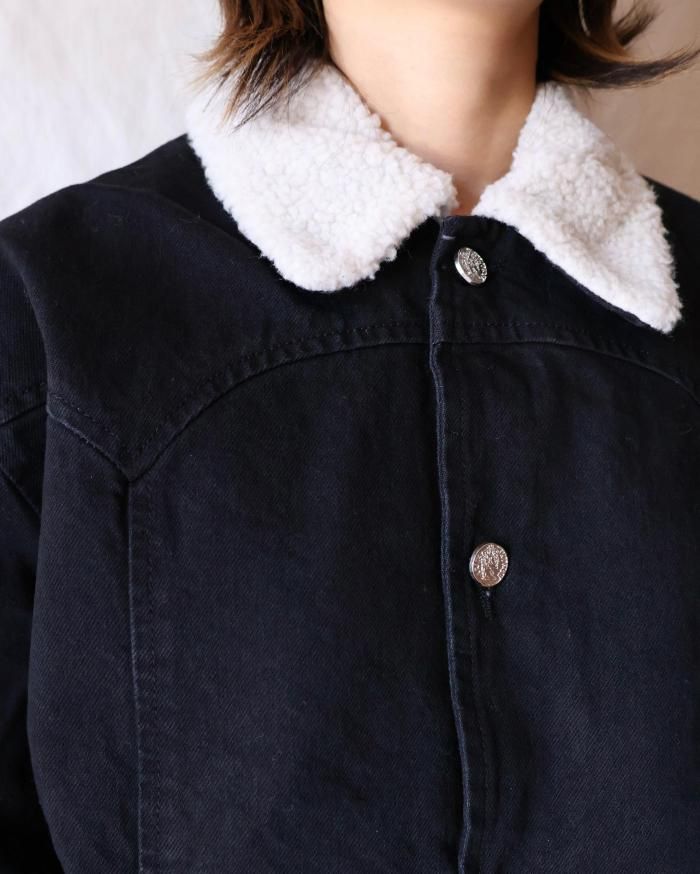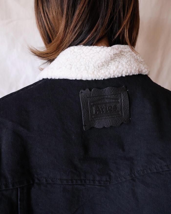 Aries:Sherpa Denim Car Coat - BLACK
