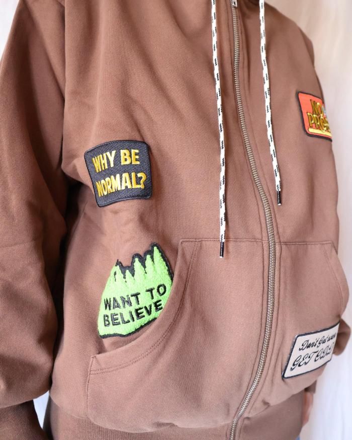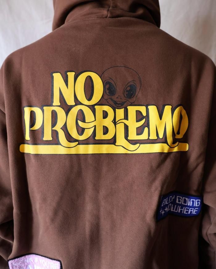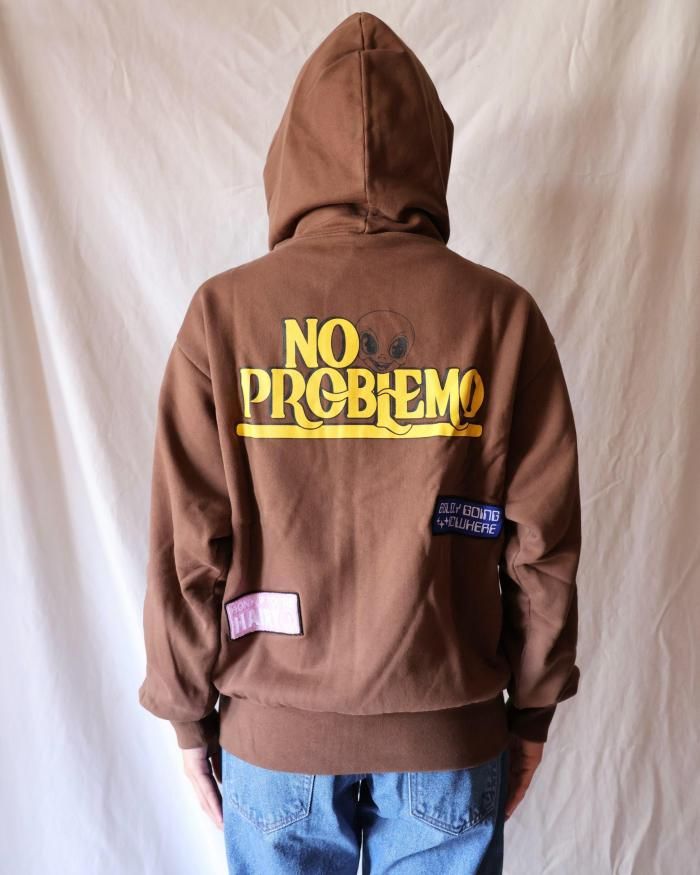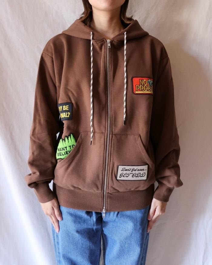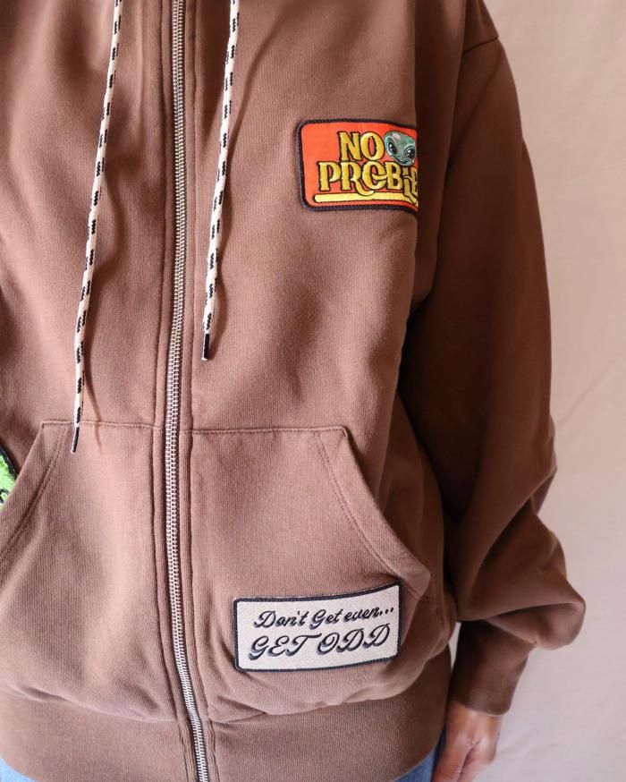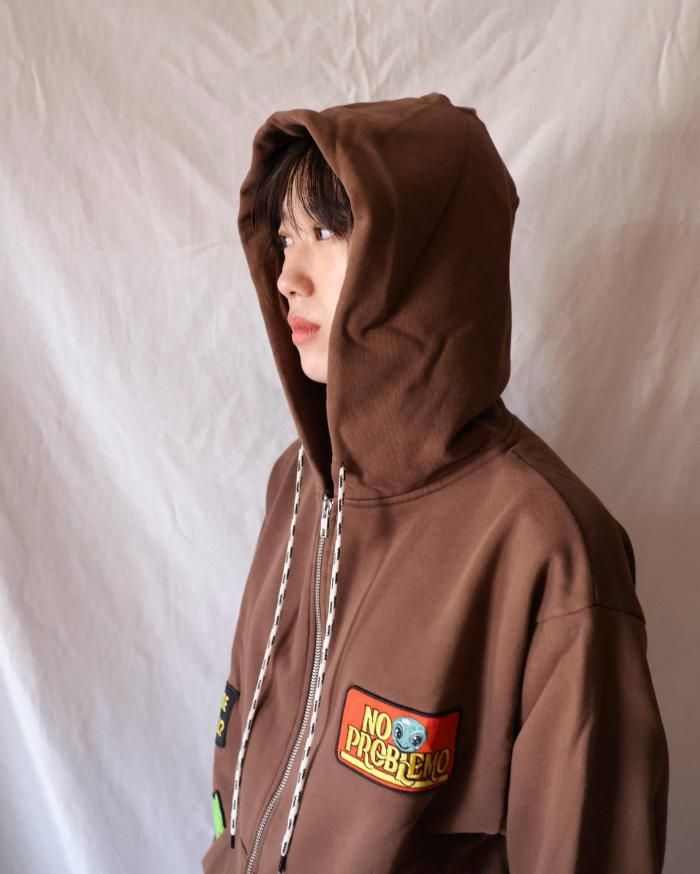 Aries/ No Problemo:Sticker Zip Thru Hoodie - BROWN