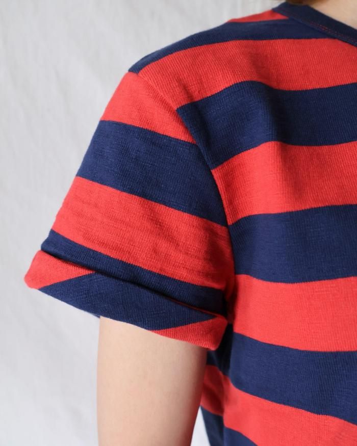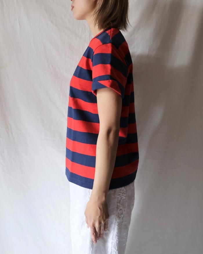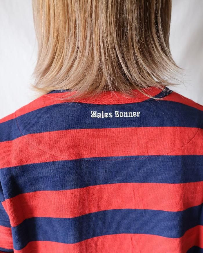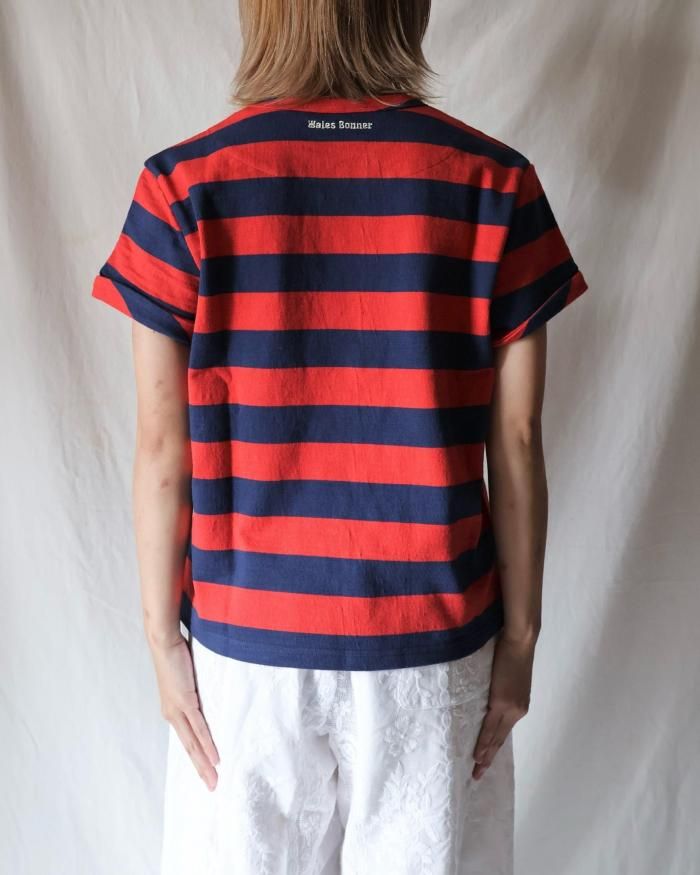 WALES BONNER:CITY CROPPED T SHIRT - RED/NAVY