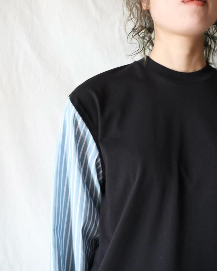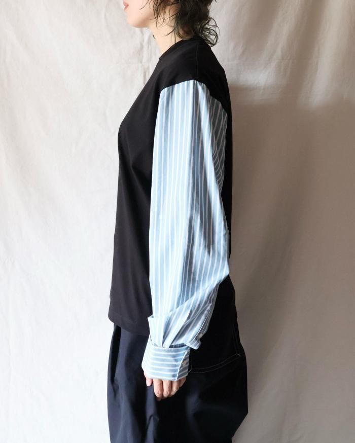 Meryll Rogge:T-SHIRT WITH SHIRTING SLEEVES - BLACK / GREEN
