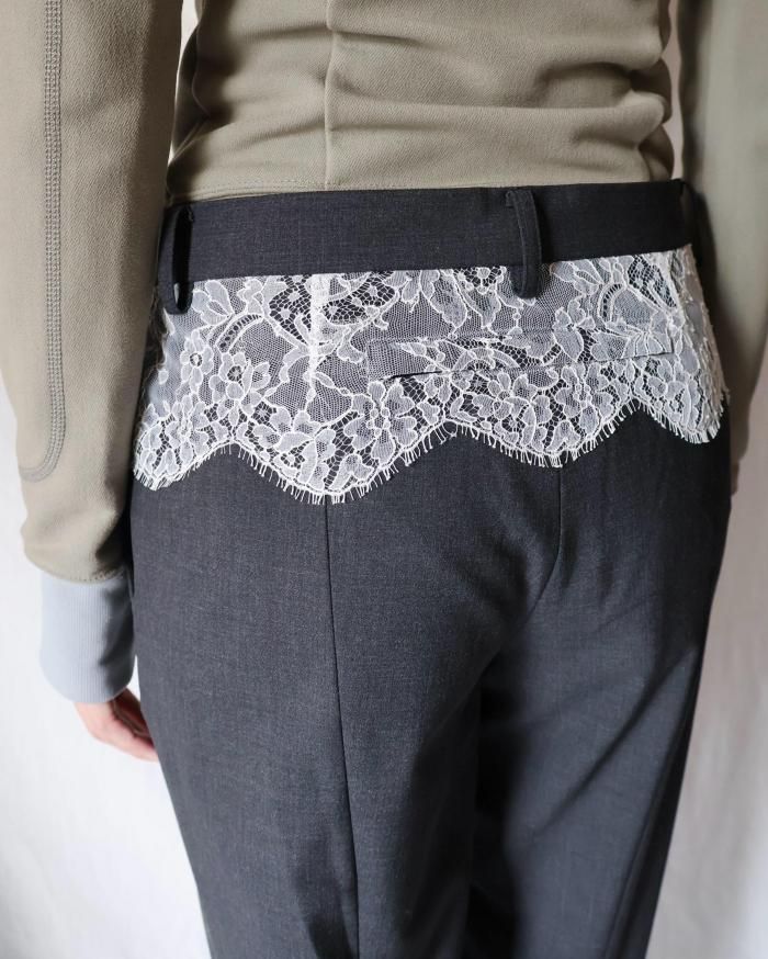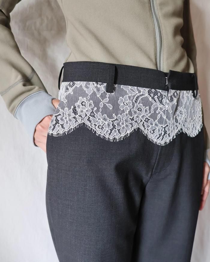 FUMIKA UCHIDA: SUITING LACE WAIST PANTS - CHL/WHITE