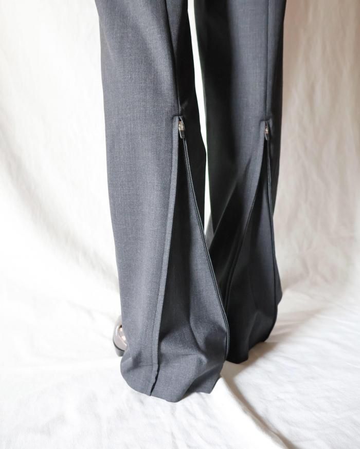 ヒップにジップポケット、ヘムには、裾幅を調整するファスナー付きです。